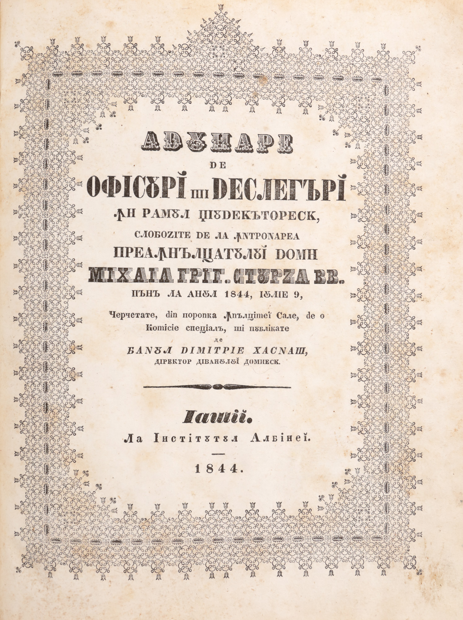 143. "Adunare de ofisuri și dezlegări în ramul judecătoresc", de Banul Dimitrie Hasnaș, Iași, 1844