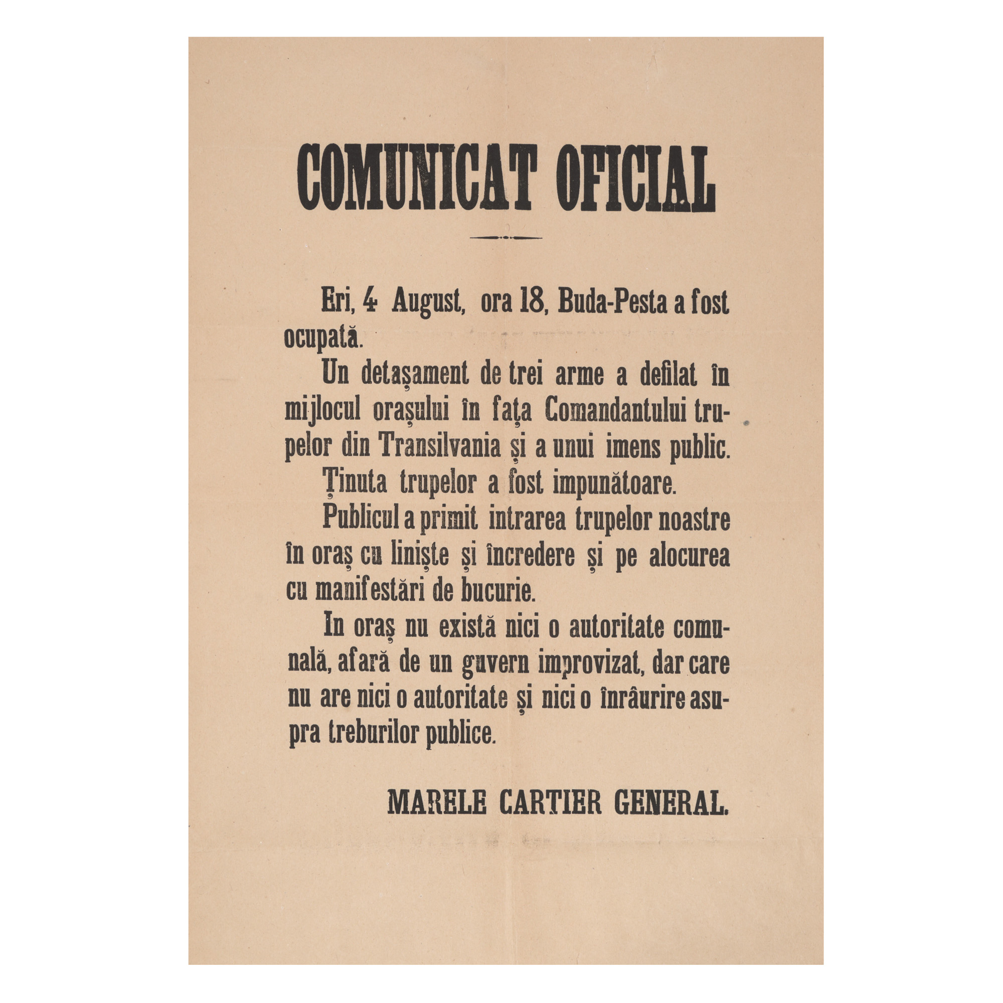 154. Afiș de propagandă anunțând defilarea trupelor române la Budapesta, 1919