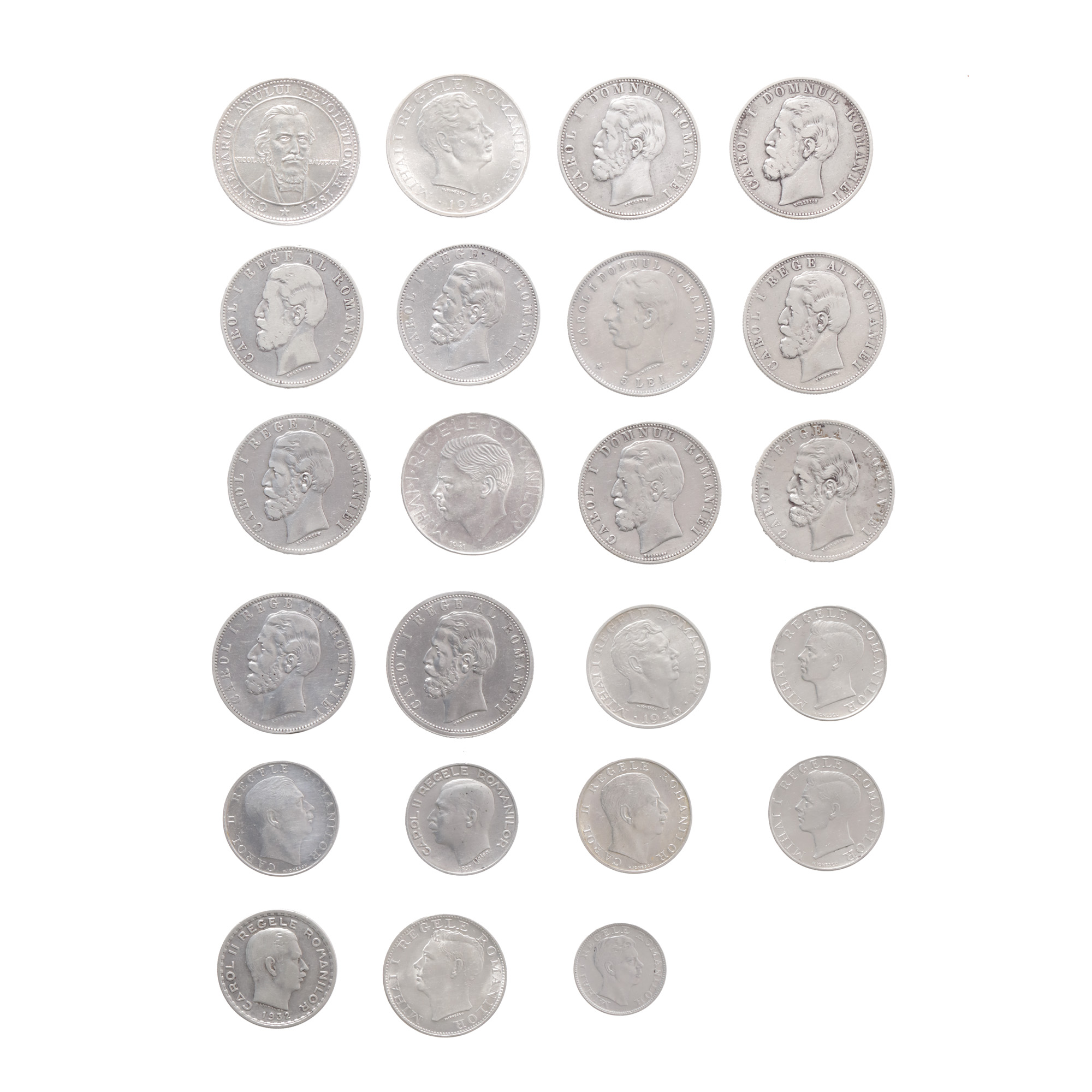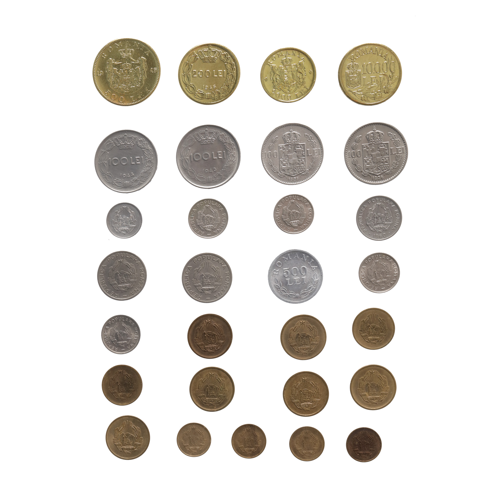 Clasorul conține: 1 ban: 1867, 1900, 1952, 1953, 1954 (2), 2005, 2006, 2007, 2008, 2010, 2011 2 bani: 1867 (2), 1879, 1880, 1882, 1900 (2) 3 bani: 1952, 1953 5 bani: 1867 (2), 1882, 1883, 1884, 1885, 1900, 1905, 1906, 1952, 1953, 1954, 1955, 1956, 1957, 1963, 1966, 1975, 2005, 2006, 2007, 2008, 2009, 2010, 2011 10 bani: 1867 (2), 1900, 1905, 1906, 1952, 1954, 1955, 1956, 2005, 2006, 2007, 2008, 2009, 2010, 2011 15 bani: 1960, 1966, 1975 20 bani: 1900, 1905, 1906 25 bani: 1921, 1952, 1953, 1954, 1955, 1960, 1966, 1982 50 bani: 1873, 1876, 1881, 1884, 1894, 1900, 1901, 1910, 1911, 1912, 1914, 1947, 1955, 1956, 2005, 2006, 2008, 2009, 2010 (Aurel Vlaicu), Mircea cel Batran, 2012 (2, cu Neagoe Basarab) 1 leu: 1870, 1873, 1874, 1881, 1884, 1885, 1894, 1900, 1901, 1906, 1910, 1911, 1912, 1914, 1924, 1938, 1939, 1940, 1941, 1947, 1949, 1950, 1951, 1966, 1992, 1993, 1994, 1995 2 lei: 1872, 1873, 1875, 1876, 1881, 1894, 1900, 1910, 1911, 1912, 1914, 1924 (2), 1941, 1947, 1950, 1951 3 lei: 1963, 1966 5 lei: 1880 (2), 1881 (3), 1882, 1883, 1884, 1885, 1901, 1906, 1930 (3), 1942, 1947, 1948, 1949, 1950, 1951, 1978, 1992, 1993, 1994, 1995 10 lei: 1930 (3), 1990, 1991, 1992, 1993, 1994, 1995 (12), 1996 (19) 20 lei: 1930 (3), 1942, 1943, 1944, 1951, 1991, 1992, 1993, 1994, 1995 50 lei: 1937, 1938, 1991, 1992, 1993, 1994, 1995 100 lei: 1932, 1936, 1938, 1943, 1944, 1991, 1992, 1993 (2), 1994, 1995, 1996 200 lei: 1942, 1945 (2) 250 lei: 1935, 1939, 1940, 1941 (2) 500 lei: 1941, 1944, 1945 (2), 1946, 1999 (2), 2000 1000 lei: 2000, 2001, 2002, 2003, 2004 2000 lei: 1946 (2) 5000 lei: 2001, 2002, 2003 10000 lei: 1947 (2) 25000 lei: 1946 100000 lei: 1946 2 euro: Proiect neoficial România Medalia 1948 Centenarul Anului Revolutionar argint