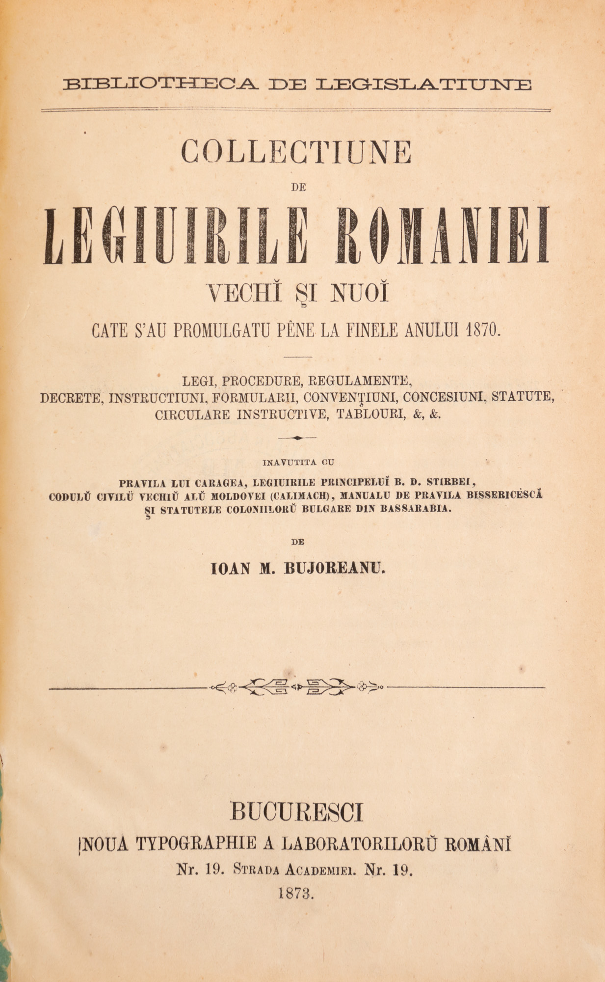 141. "Colecțiune de legi române vechi și noi", de Ioan Bujoreanu, București, 1873
