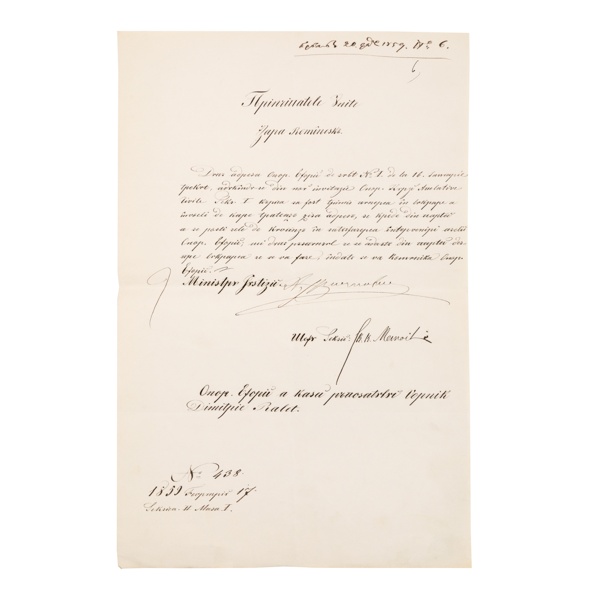 174. Document referitor la familia Ralet, din perioada Unirii Principatelor, datat februarie 1859
