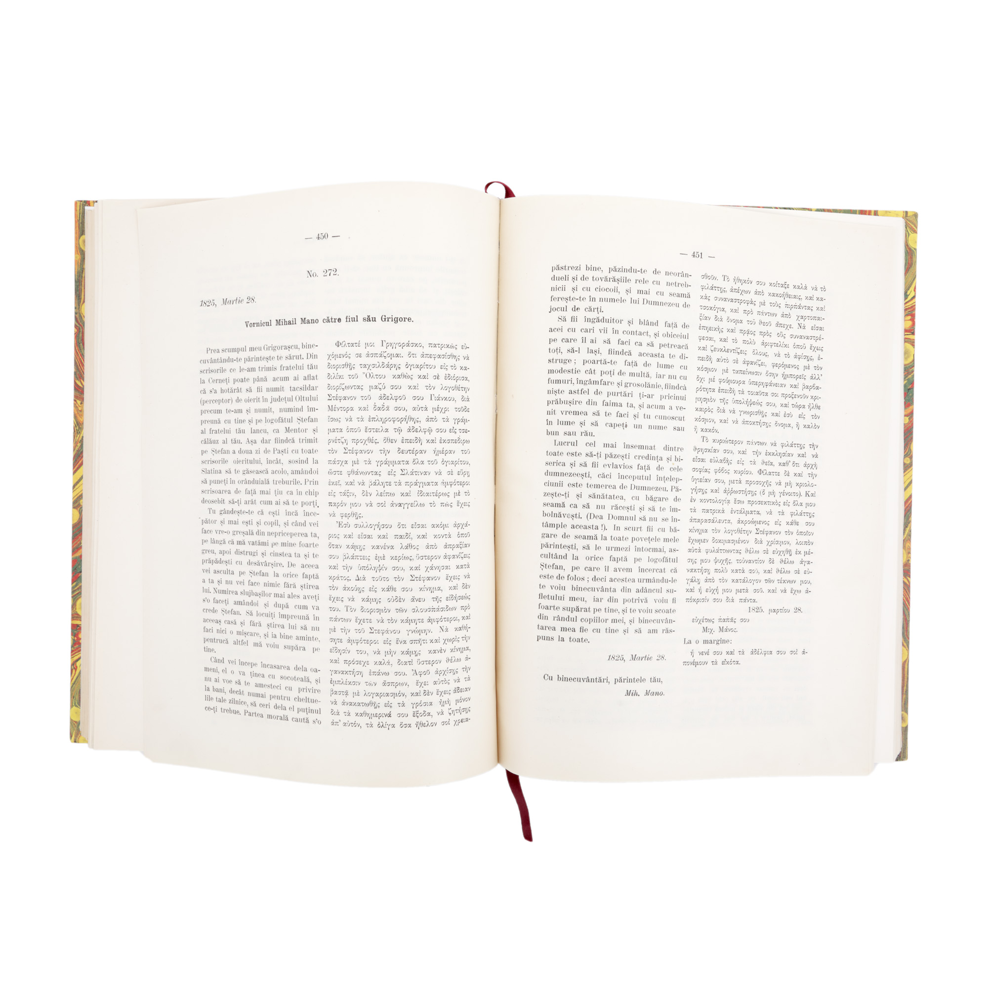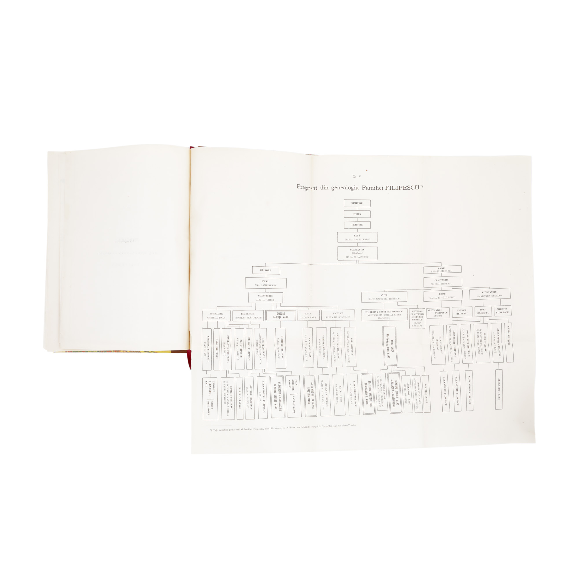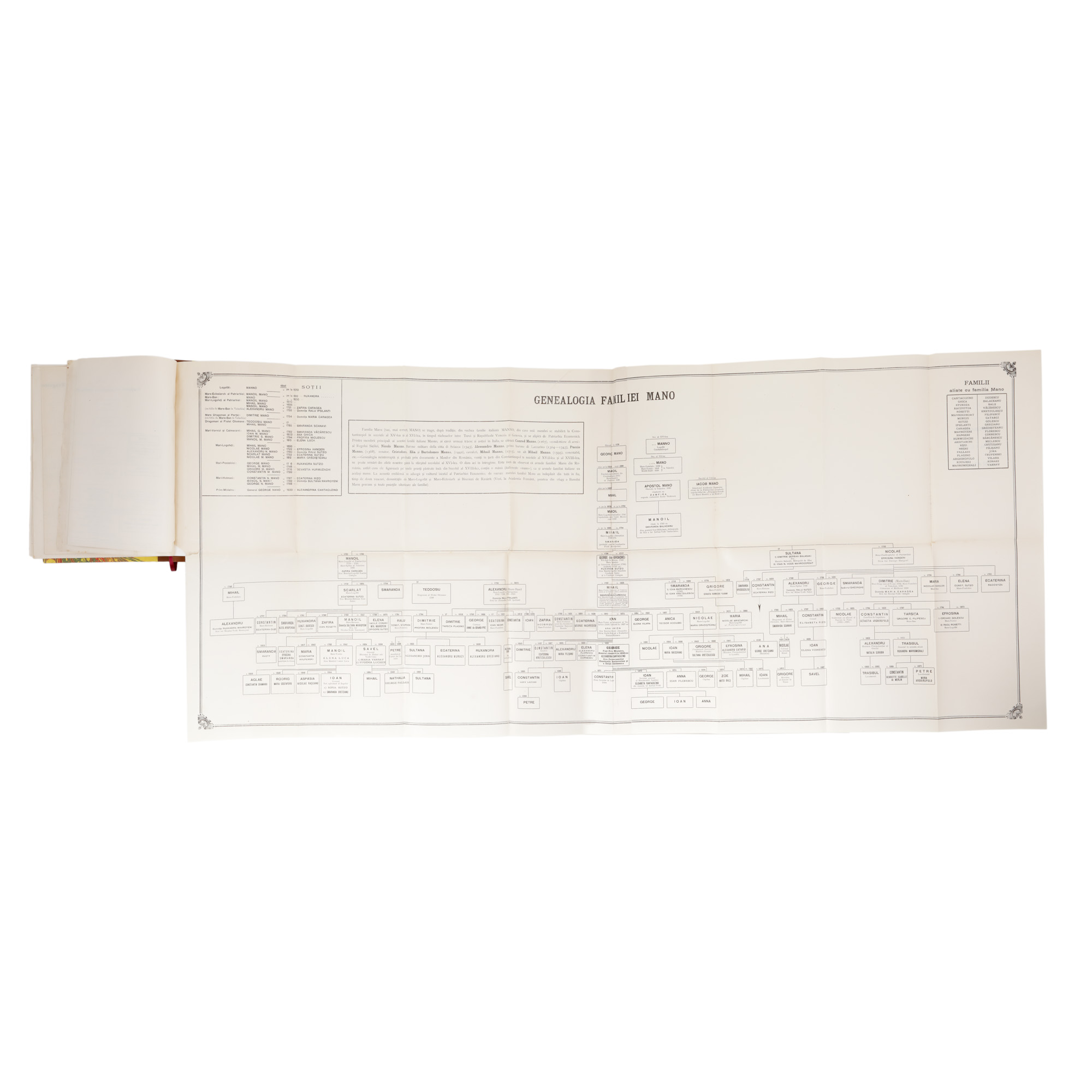 144. ”Documentele din secolele al XVI-lea - XIX-lea privitoare la familia Mano”, de Constantin George Mano, București, 1907, cu patru planșe, dedicația și semnătura olografă a autorului