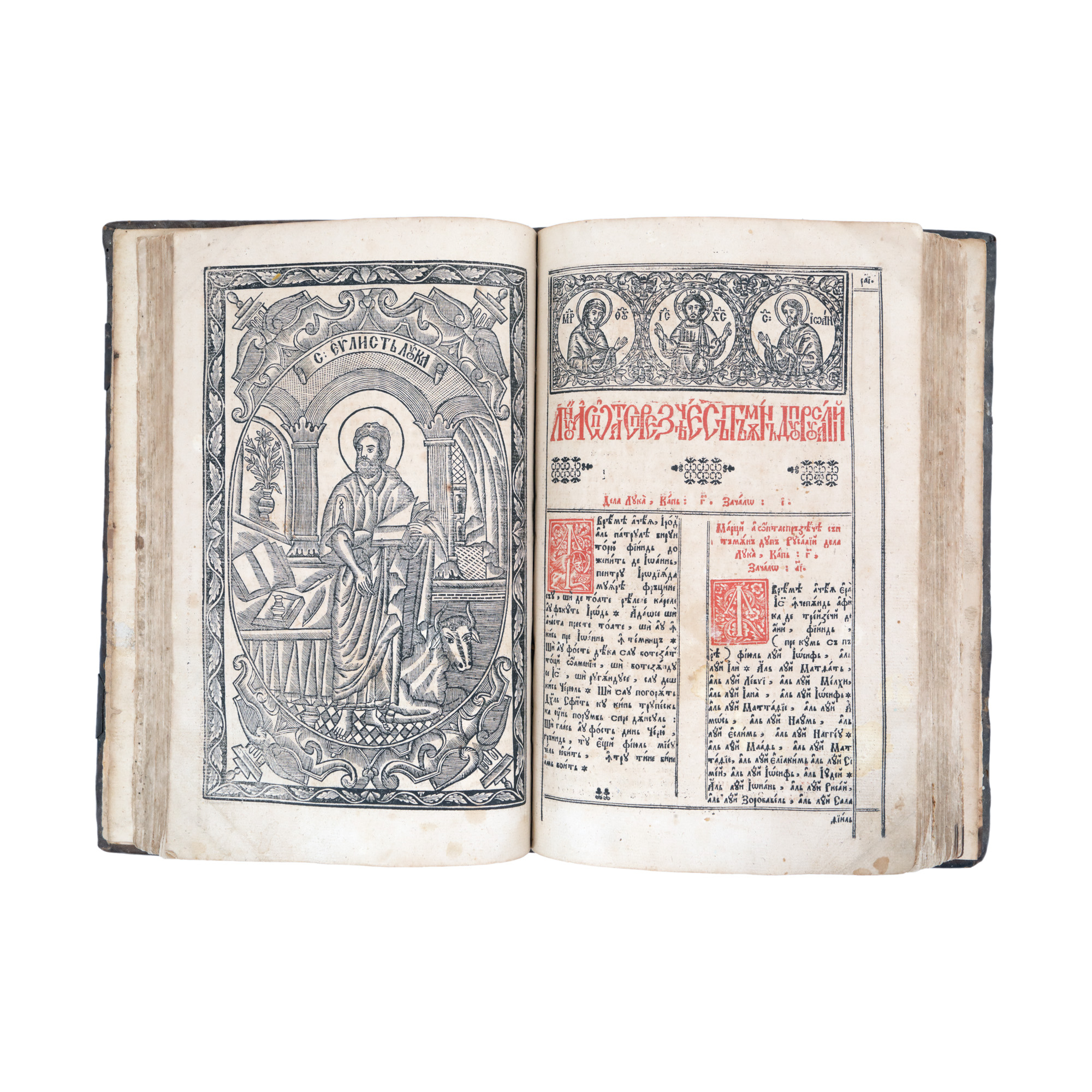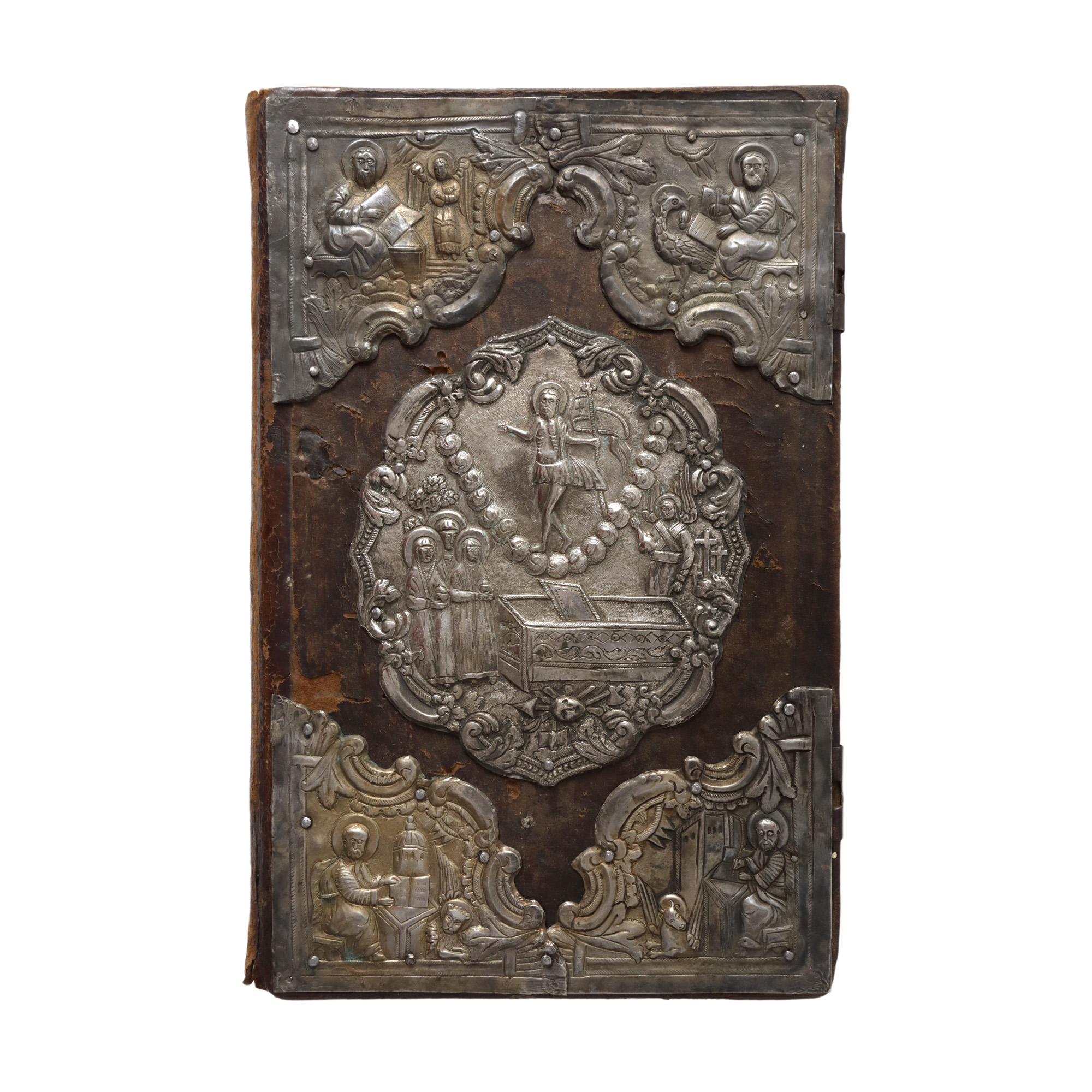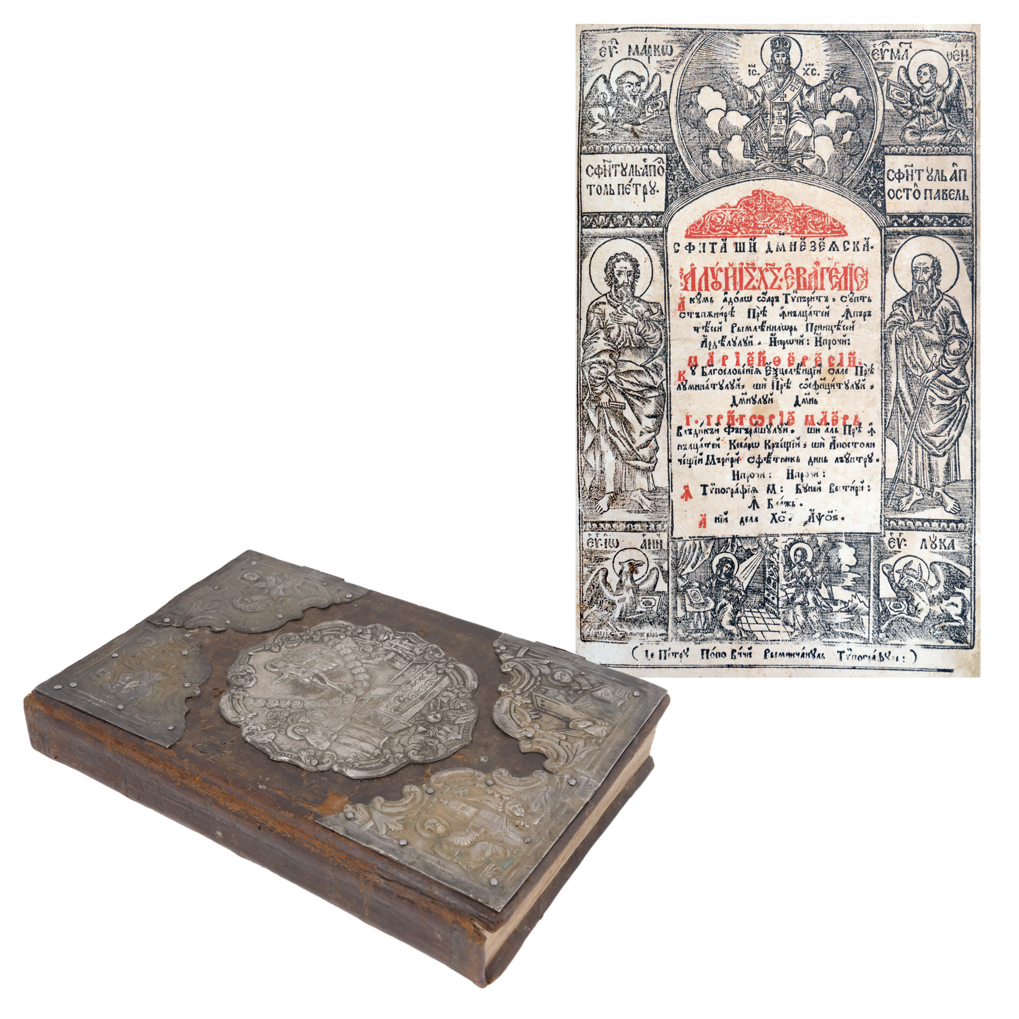 112Т. ”Evanghelie românească”, de episcopul de Blaj Grigore Maior, tipărită de Petru Popovici Râmniceanul, Blaj, 1776, sub patronajul împărătesei Maria Tereza, cu ferecătură din argint
