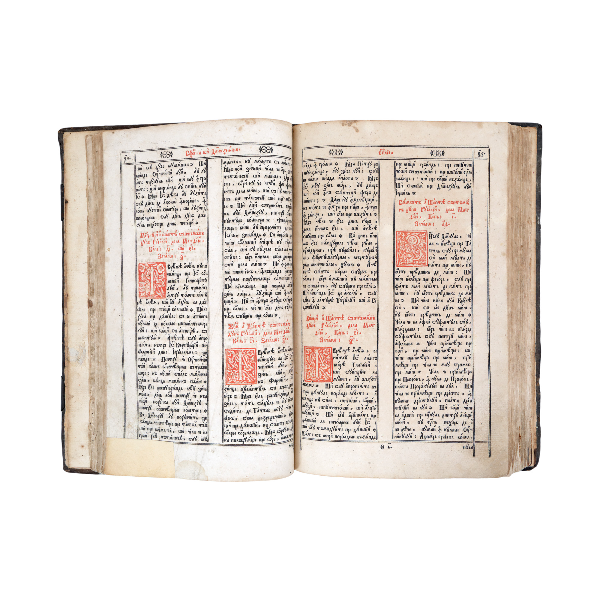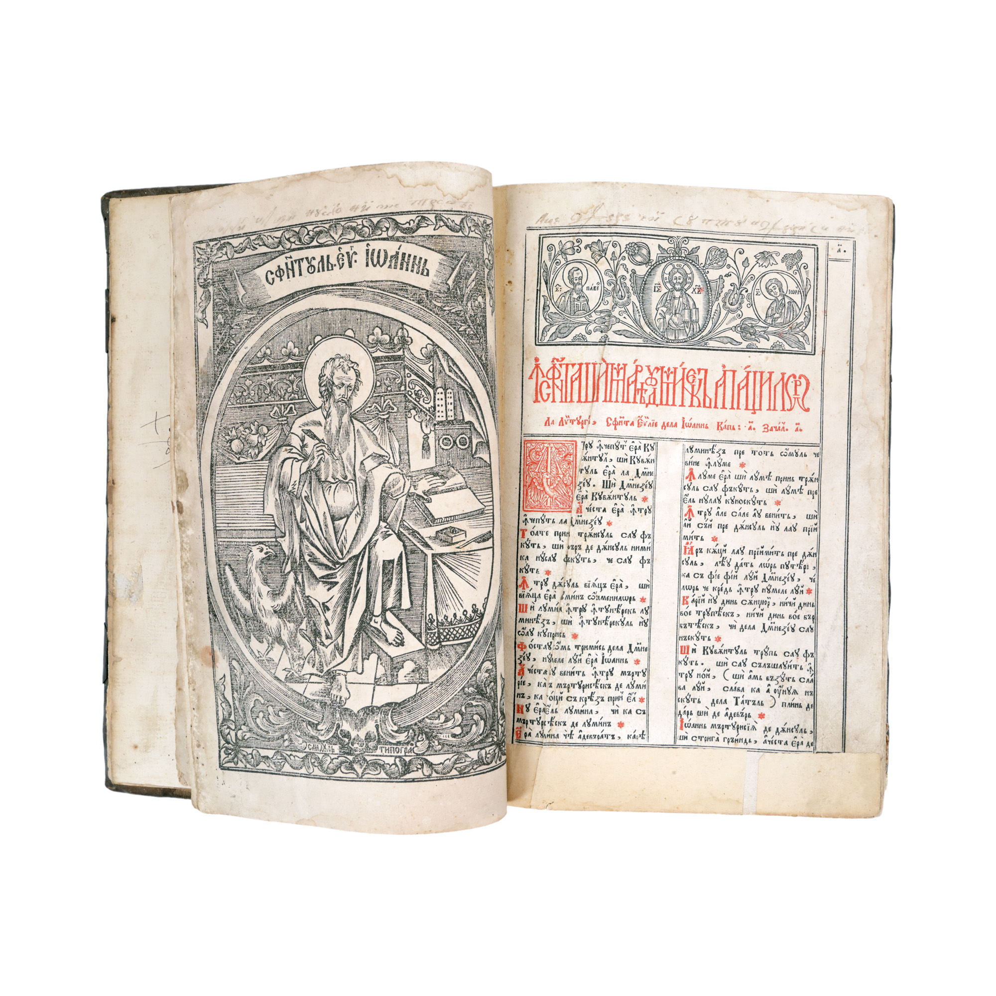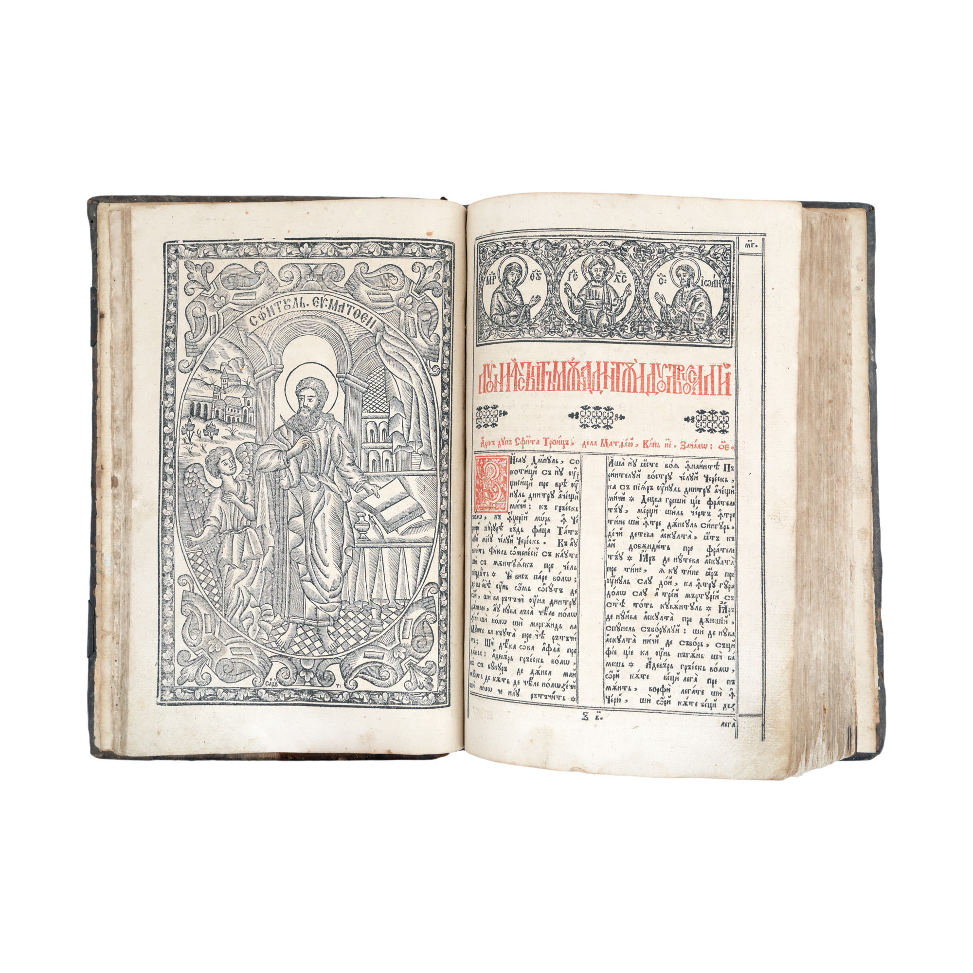 112Т. ”Evanghelie românească”, de episcopul de Blaj Grigore Maior, tipărită de Petru Popovici Râmniceanul, Blaj, 1776, sub patronajul împărătesei Maria Tereza, cu ferecătură din argint