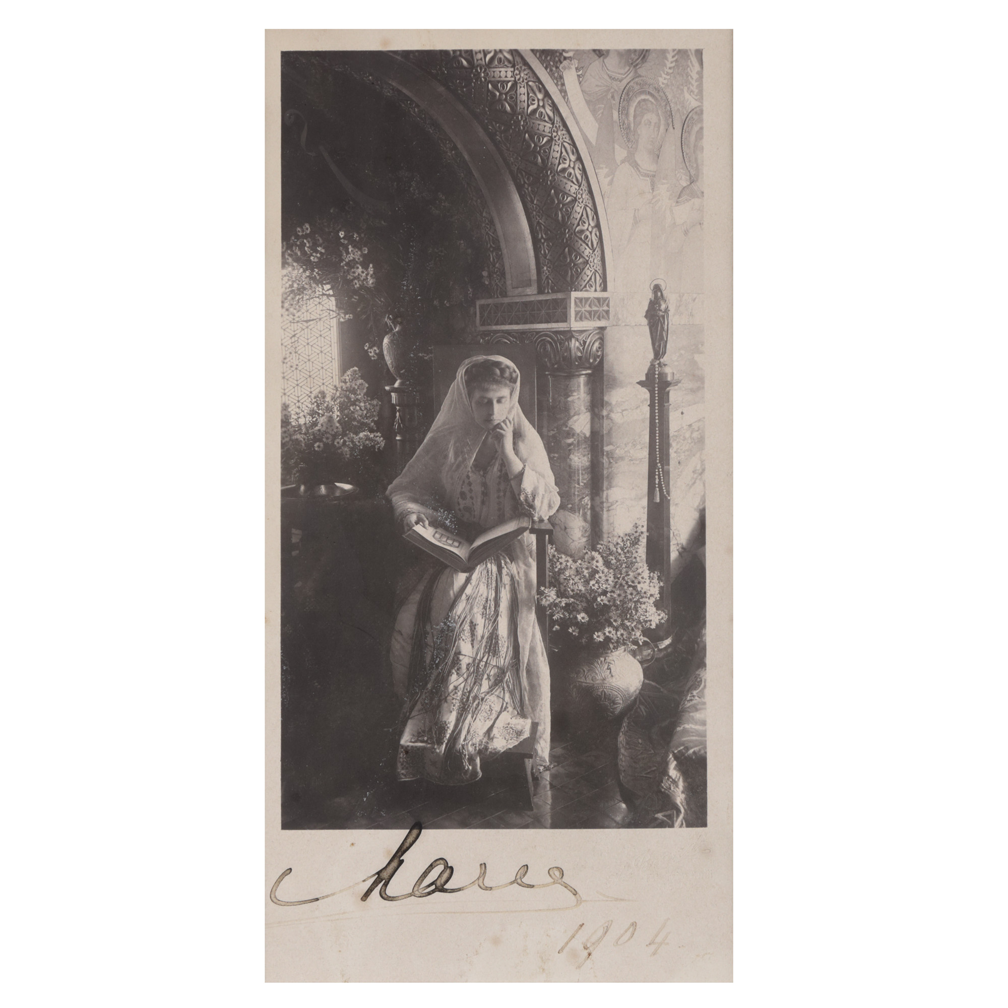 162. Fotografie ilustrând-o pe Regina Maria, la Palatul Cotroceni, cu semnătura olografă, datată 1904, atelier Alfred Brand, Sinaia