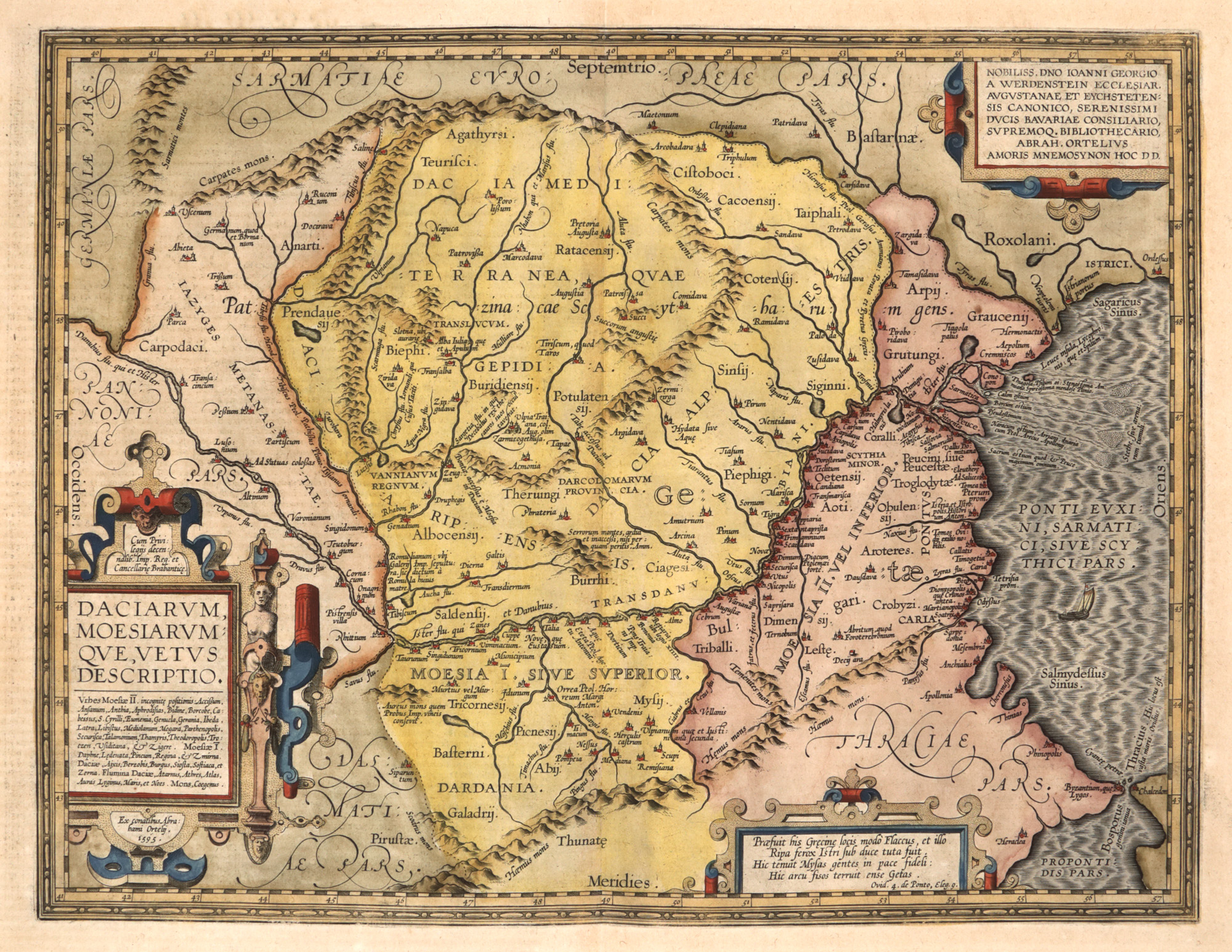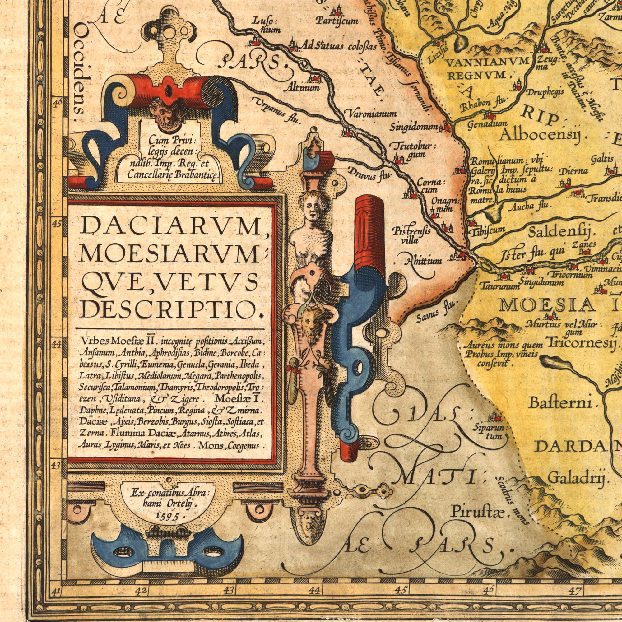 179. Hartă "Dacia și Moesia", de Abraham Ortelius, Anvers, mijlocul secolului al XVIII-lea