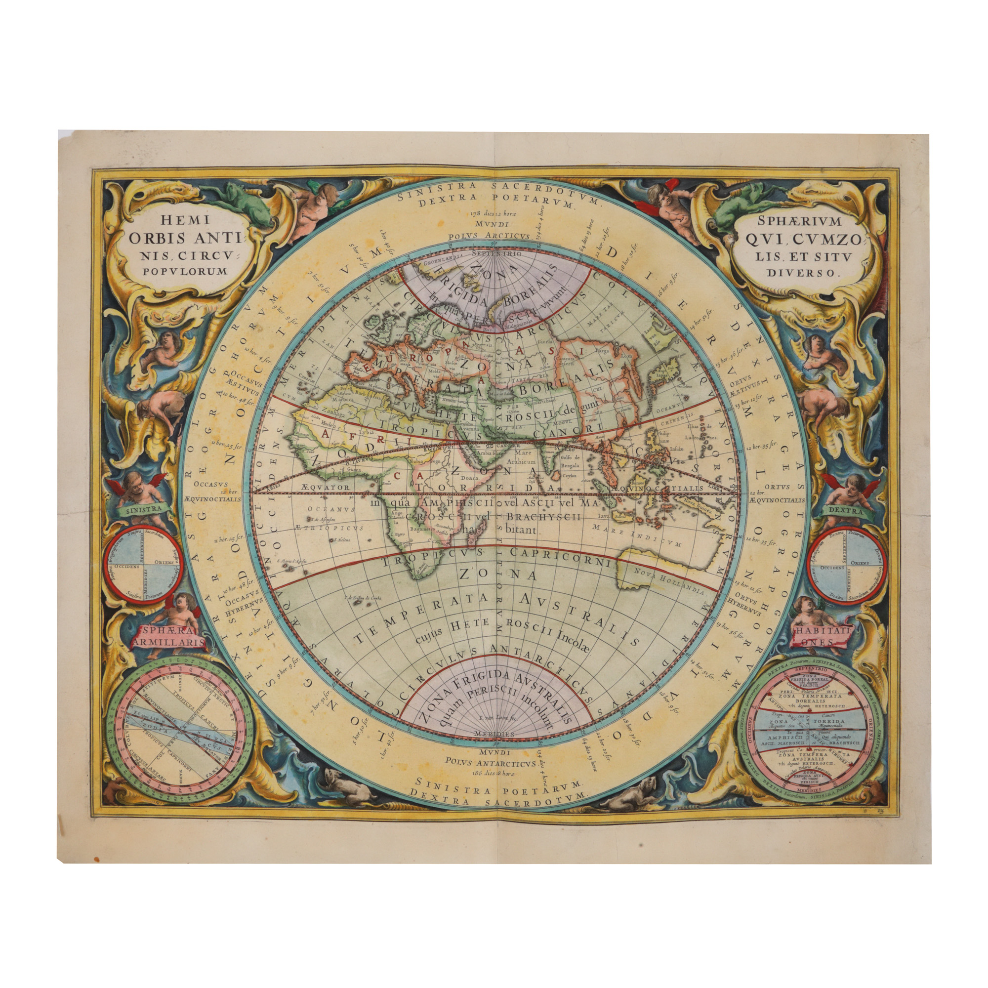 193. Hartă "Emisferele lumii antice", de Andreas Cellarius și Johannes Janssonius, Amsterdam, 1660