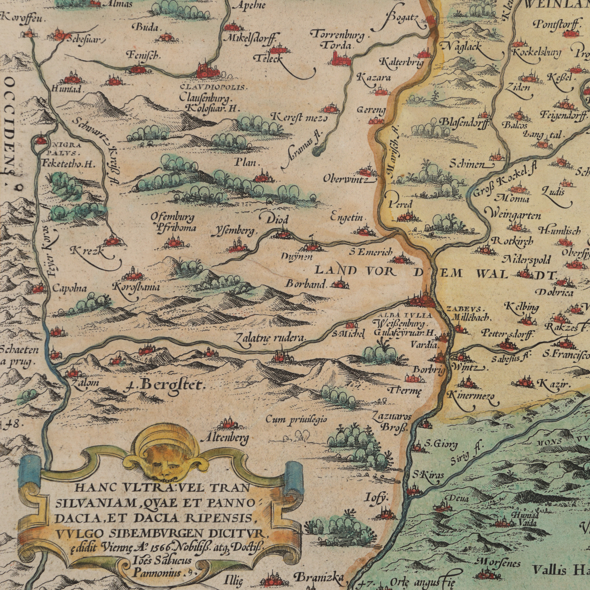 184. Hartă ”Transilvania”, de Johannes Sambucus (Janos Zsamboky), tipărită de Abraham Ortelius, ediţia Orbis Terrarum, Antwerp, 1566