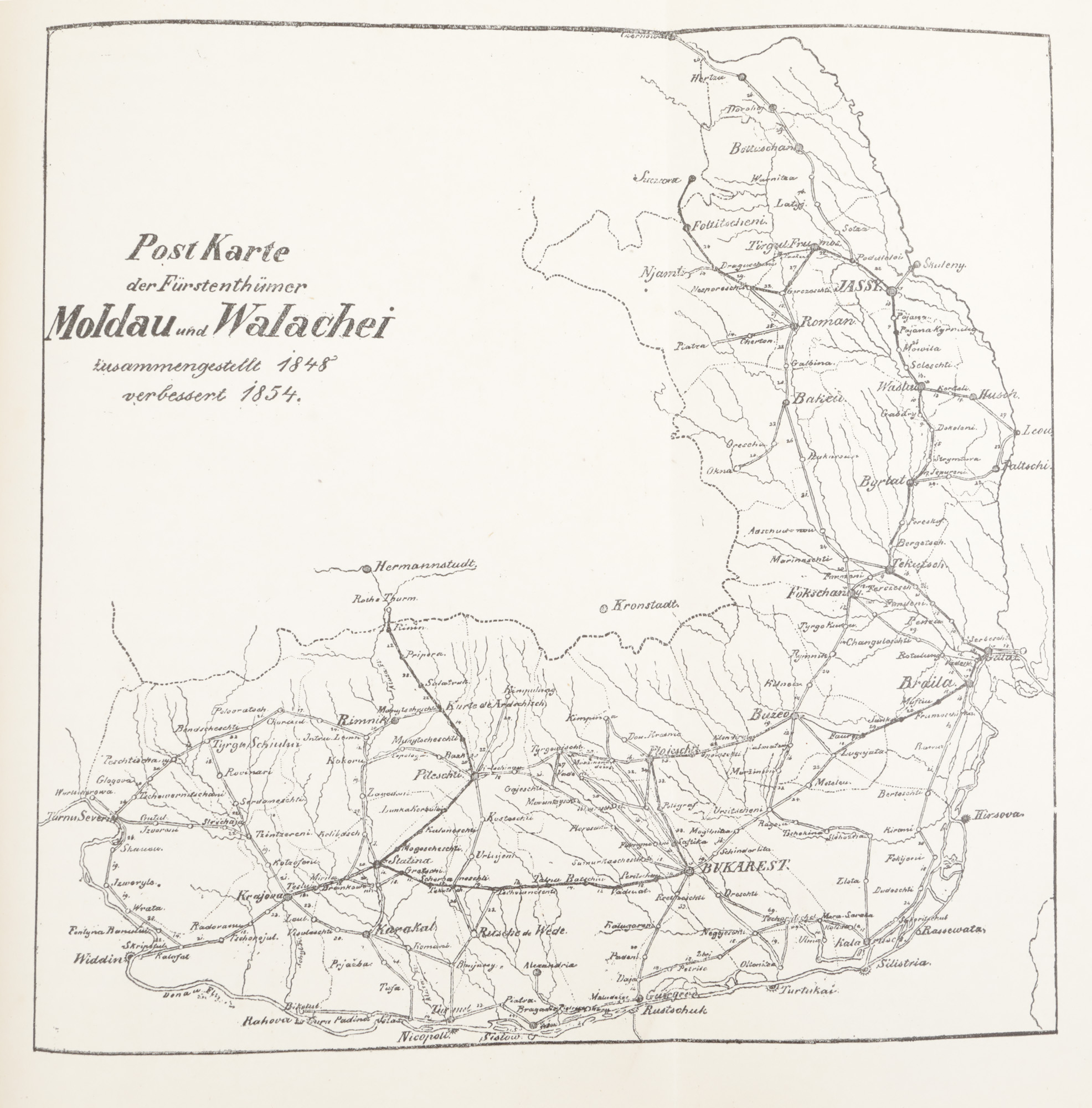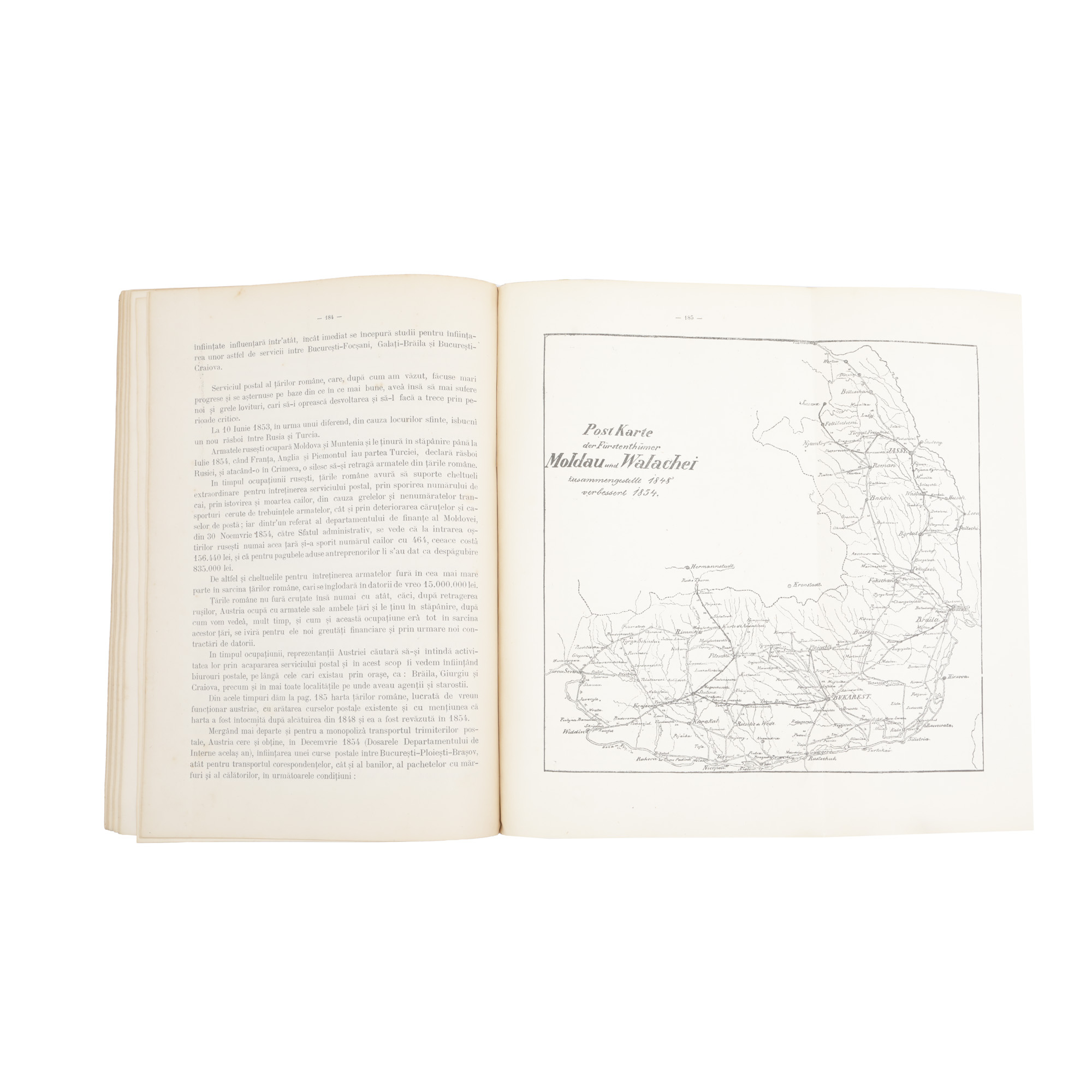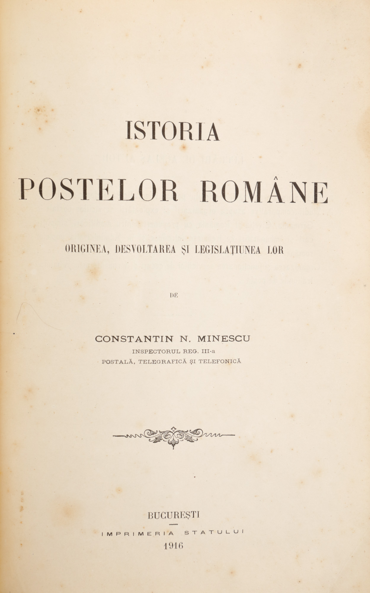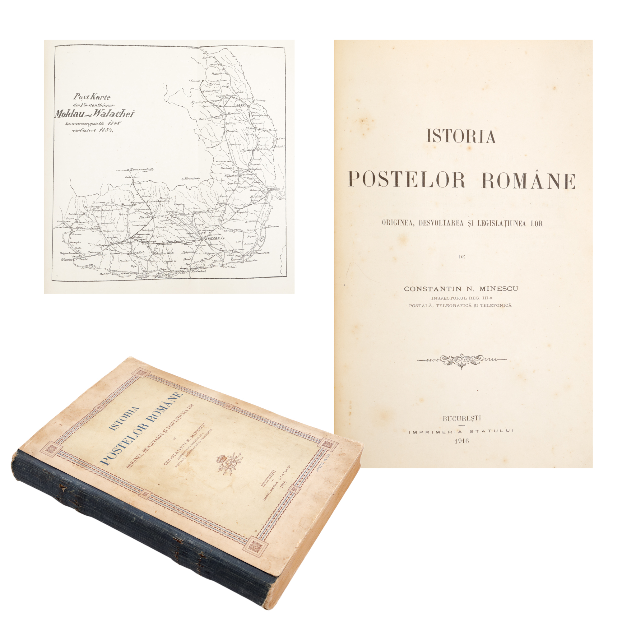 139. "Istoria poștelor române", de Constantin Minescu, București, 1916, cu o hartă a Principatelor Române