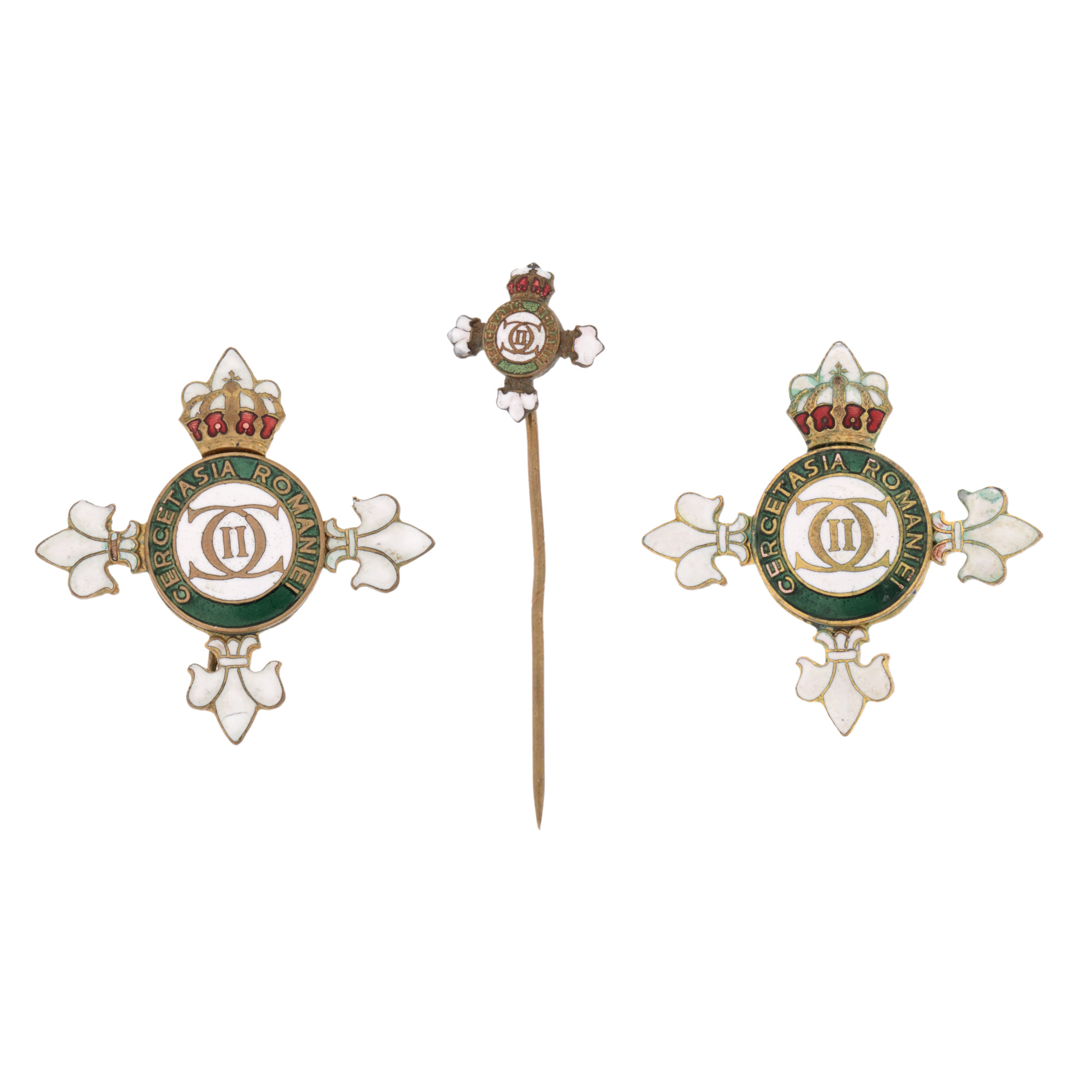 96. Lot de două insigne și miniatura ”Cercetășia României”, perioada interbelică