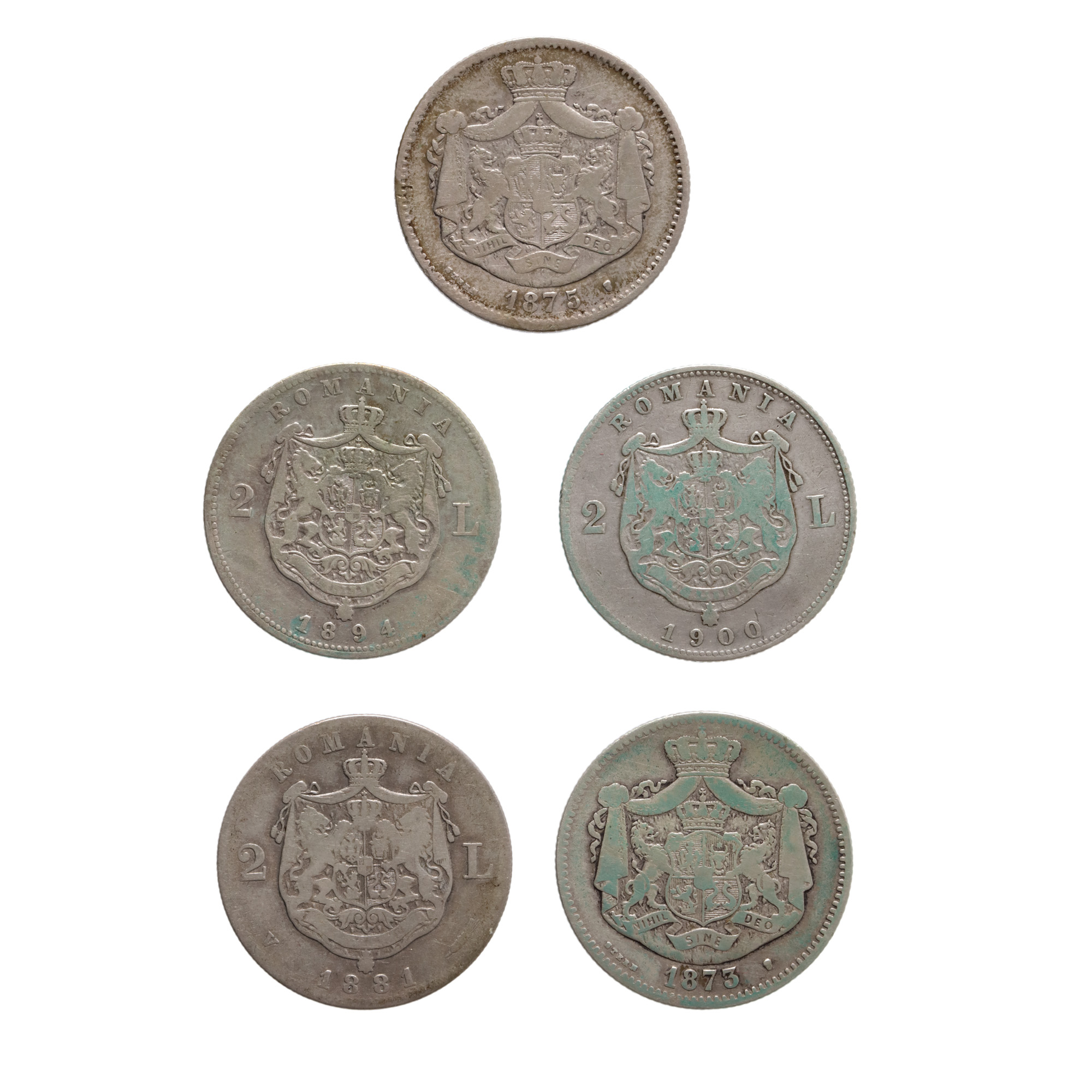 216. Lot format din cinci monede de 2 Lei, 1873-1900, argint