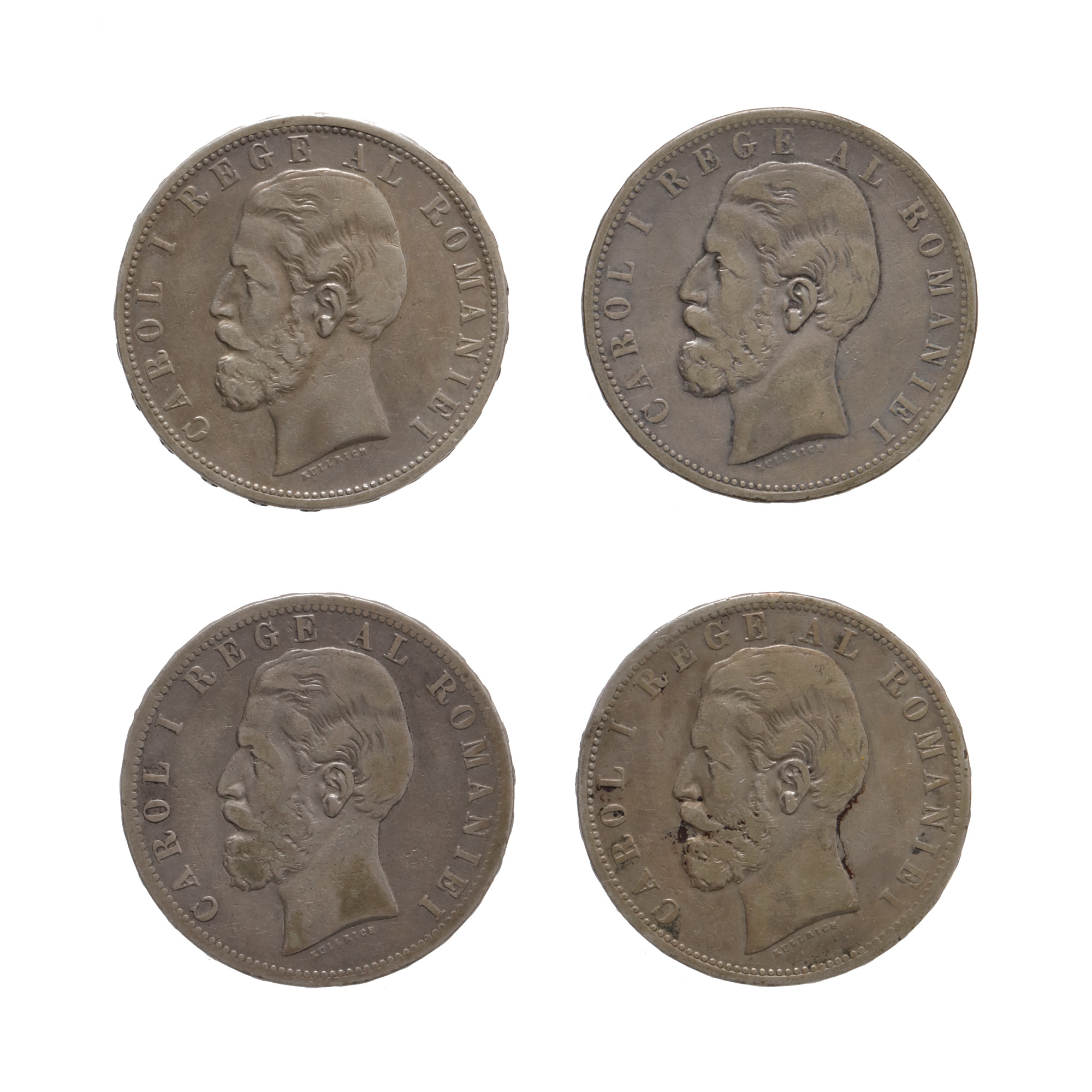 208. Lot format din patru monede de 5 Lei 1881, argint