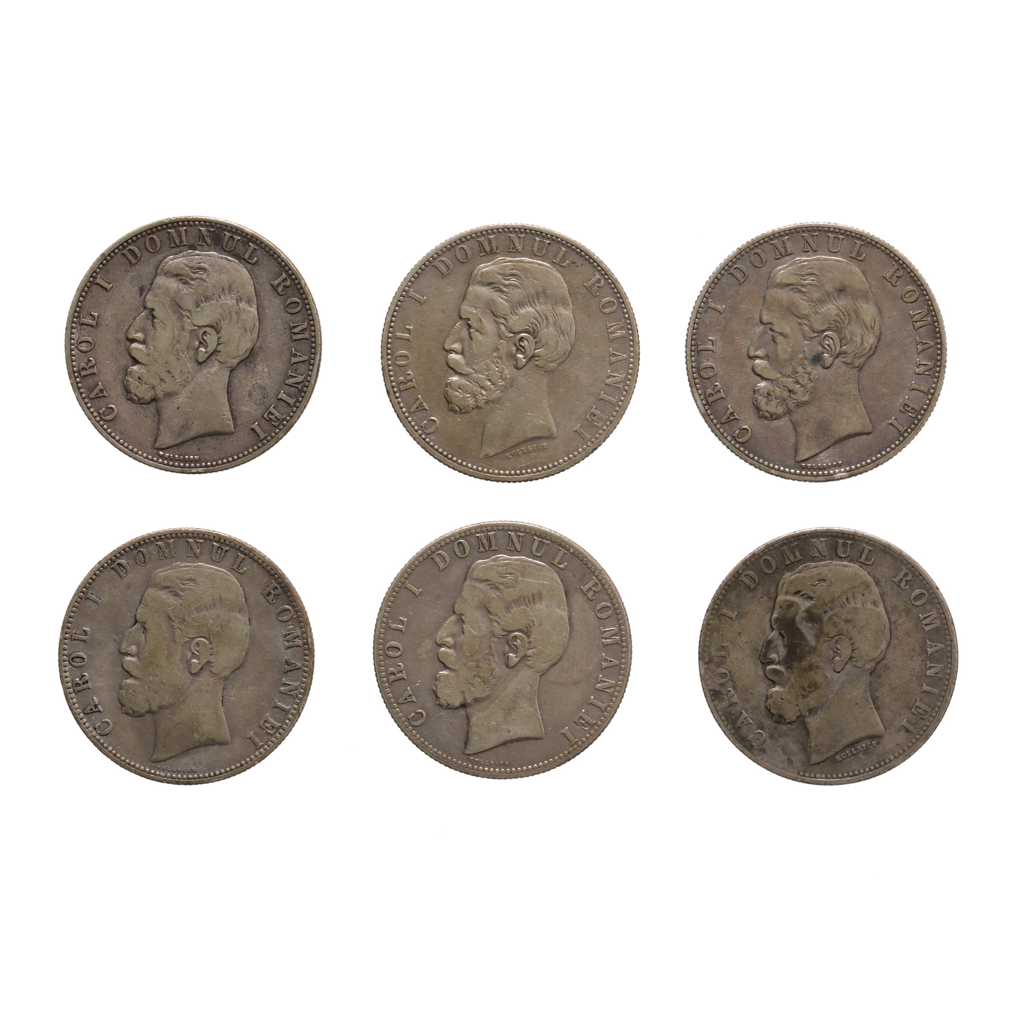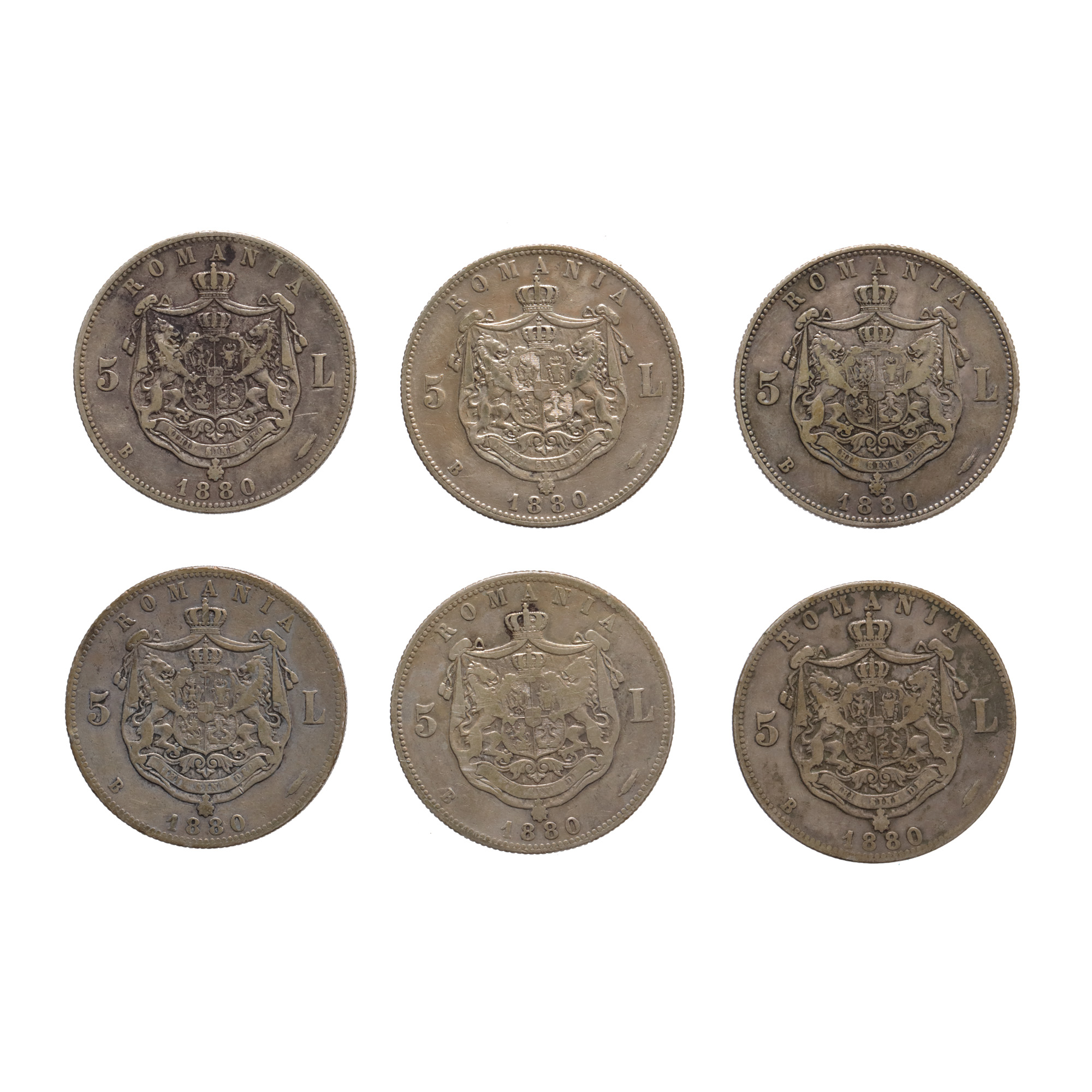 211. Lot format din șase monede de 5 Lei 1880, argint