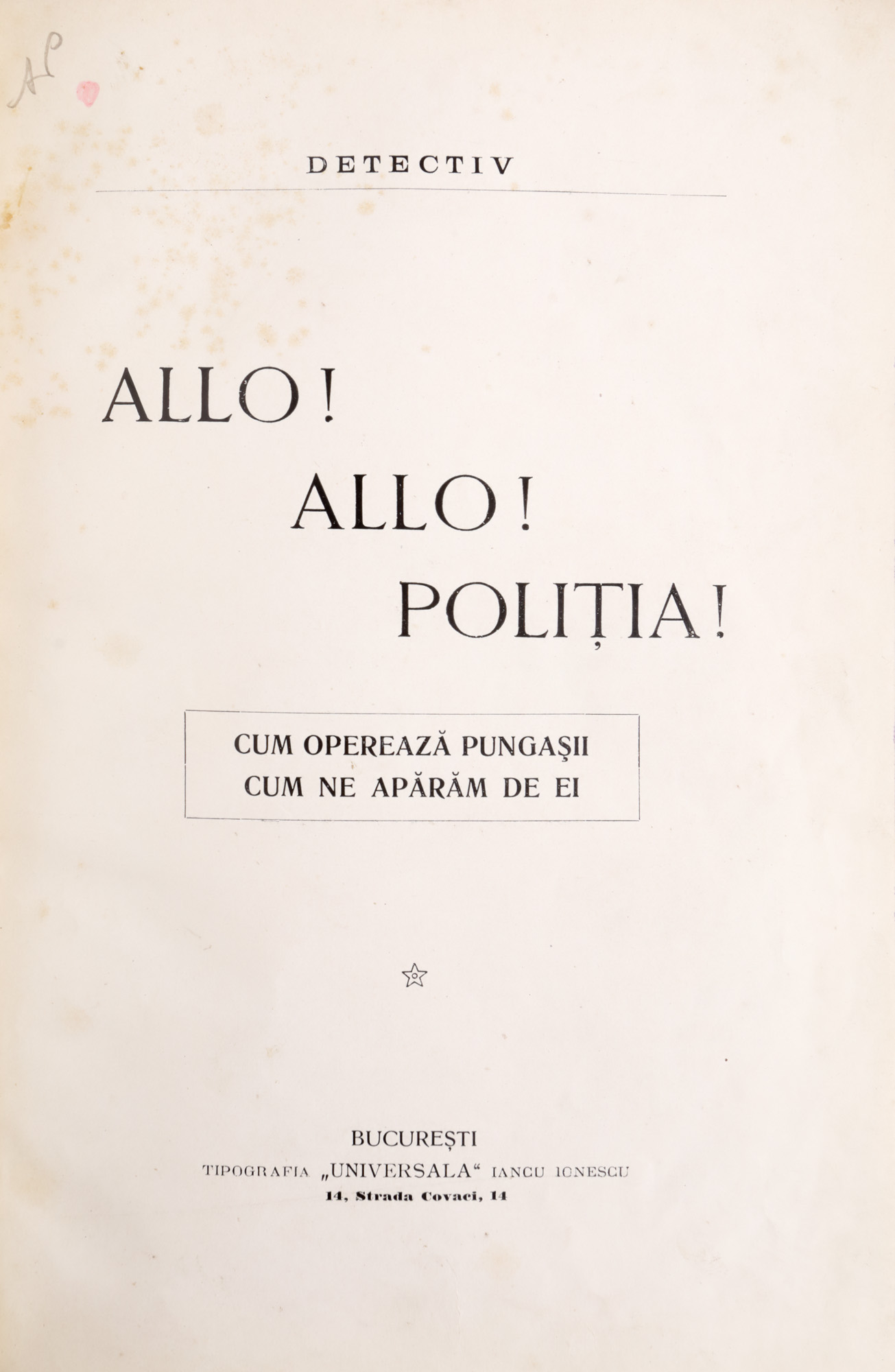 147. Manual de detectiv ”Allo! Allo! Poliția!", București, cca. 1912