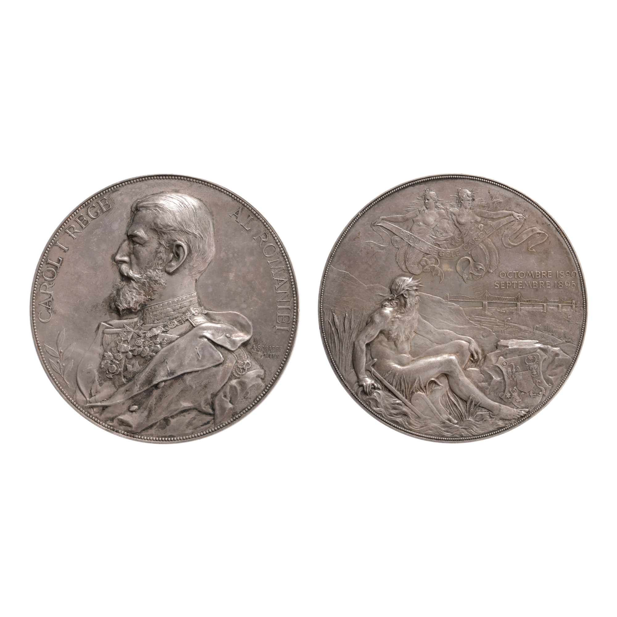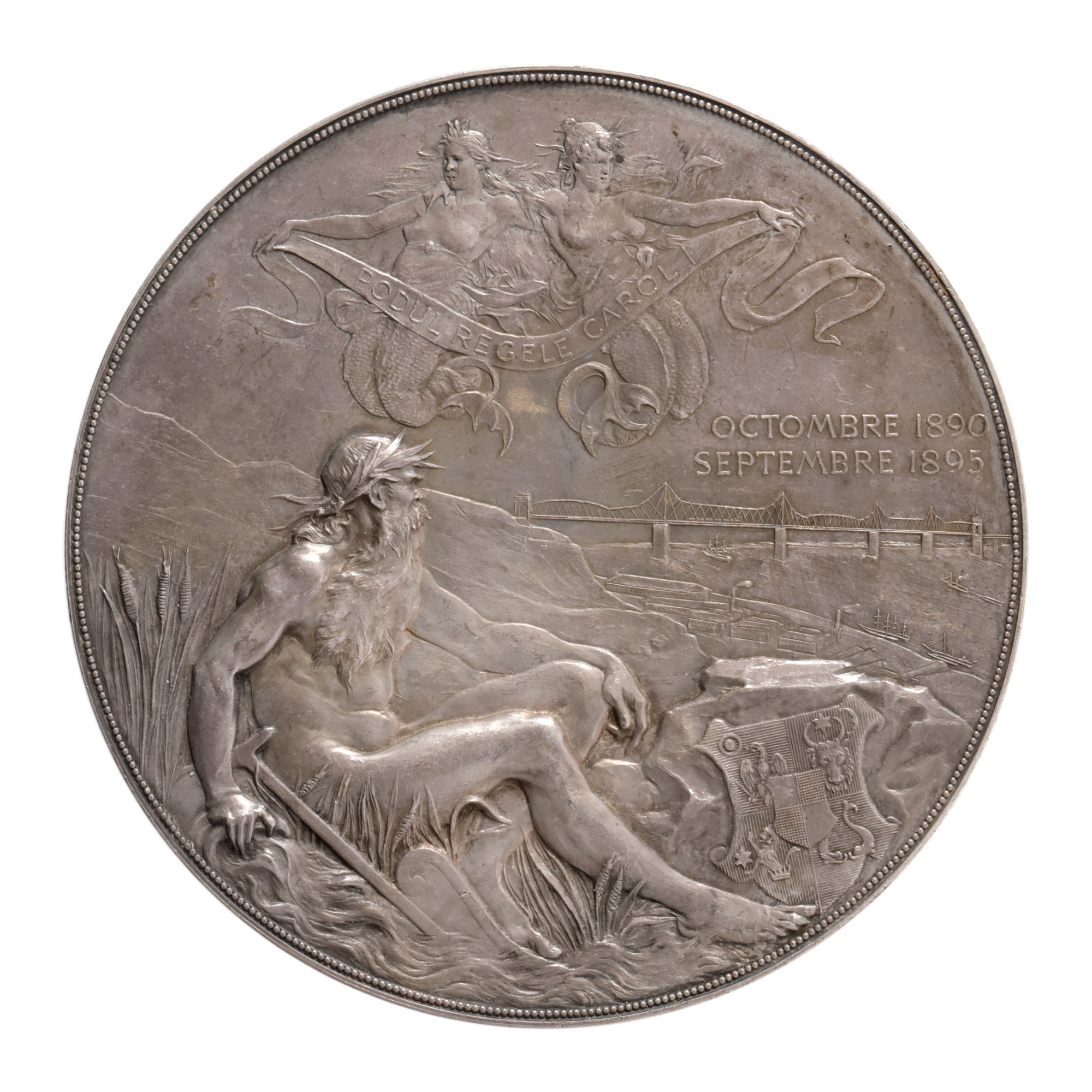 221. Medalia ”Podul Regele Carol I, octombrie 1890 - septembrie 1895”, gravor Anton Scharff, 1895, argint