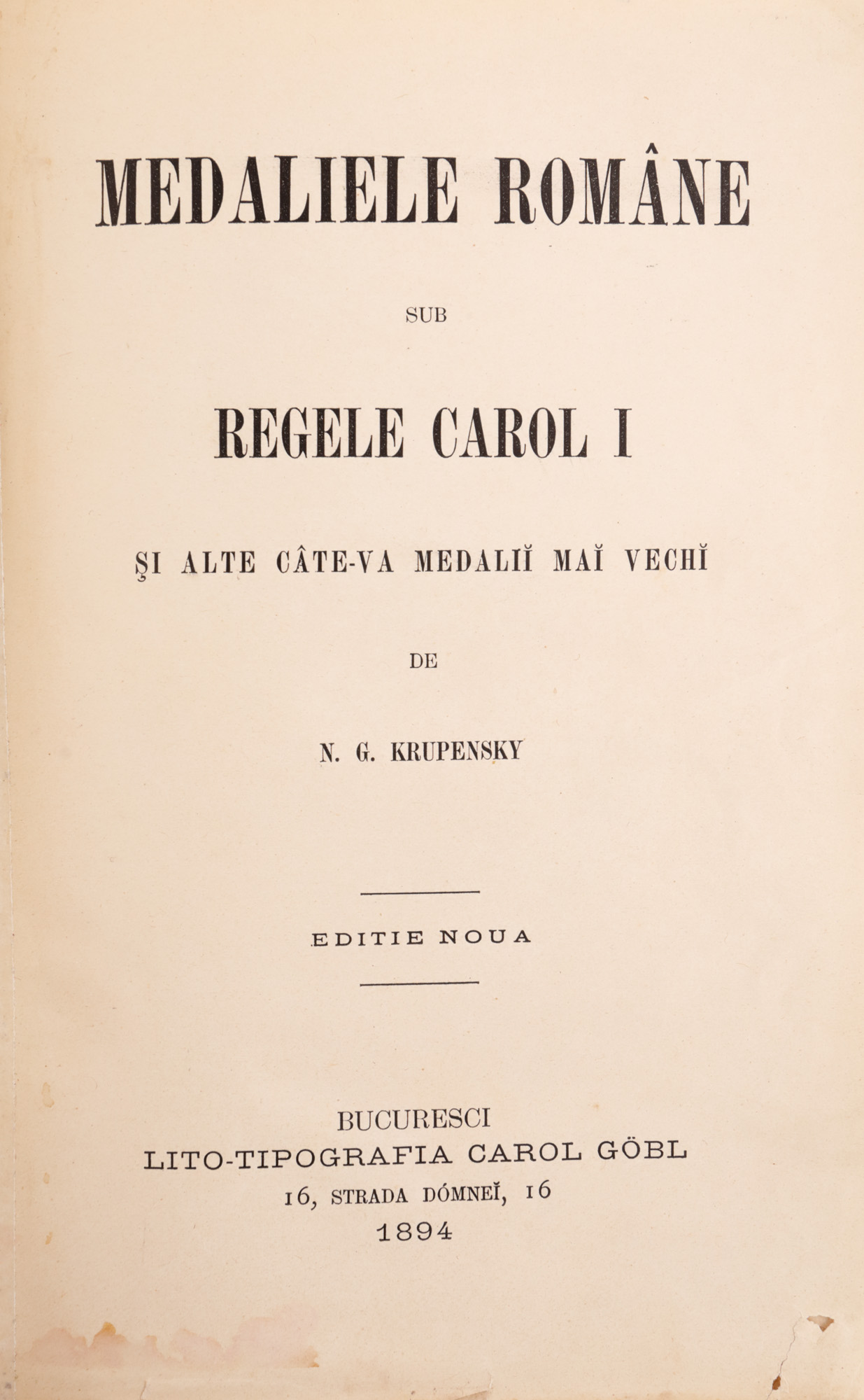 136. "Medaliile române sub Regele Carol I", de N.G. Krupensky, București, 1894