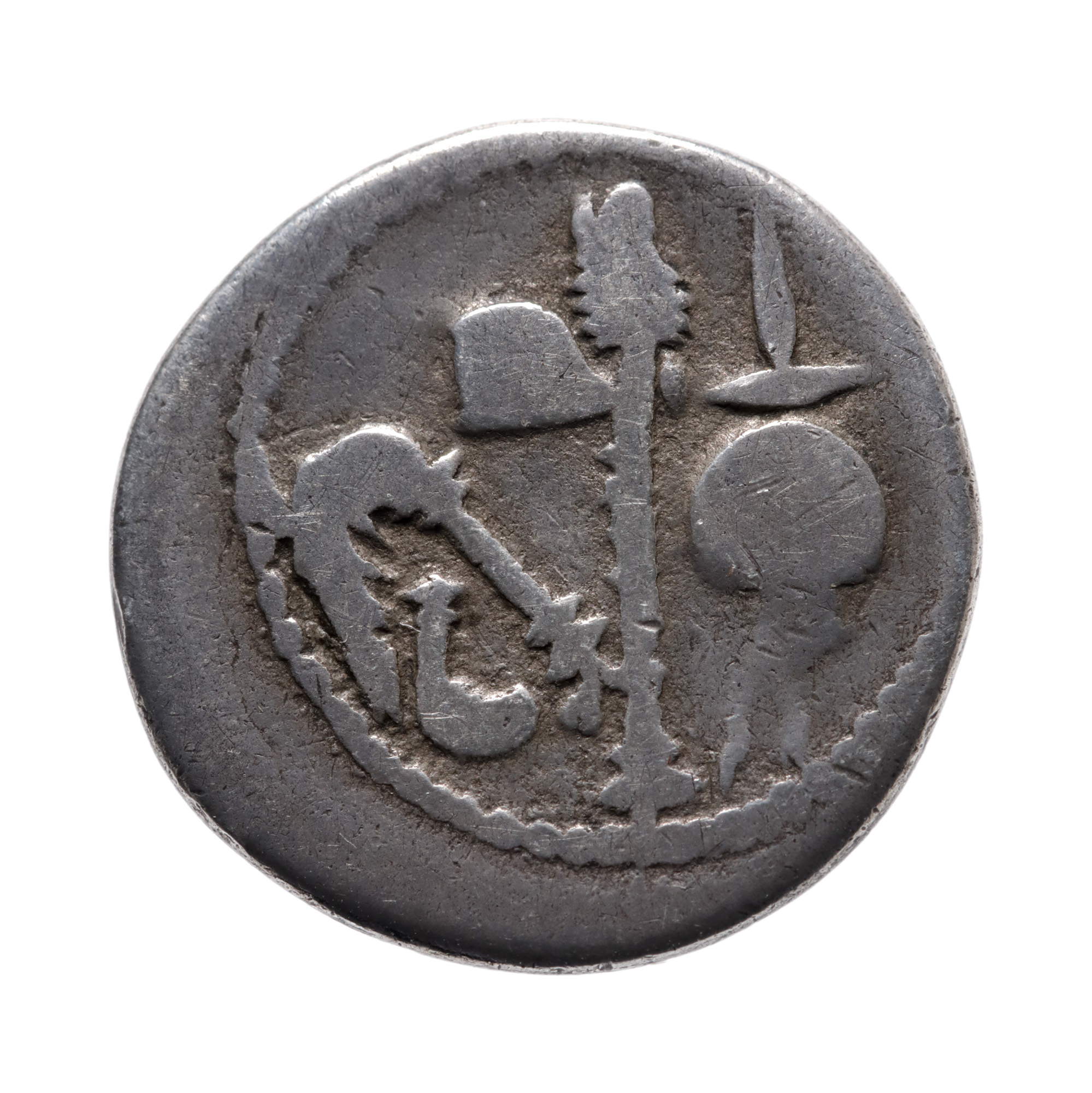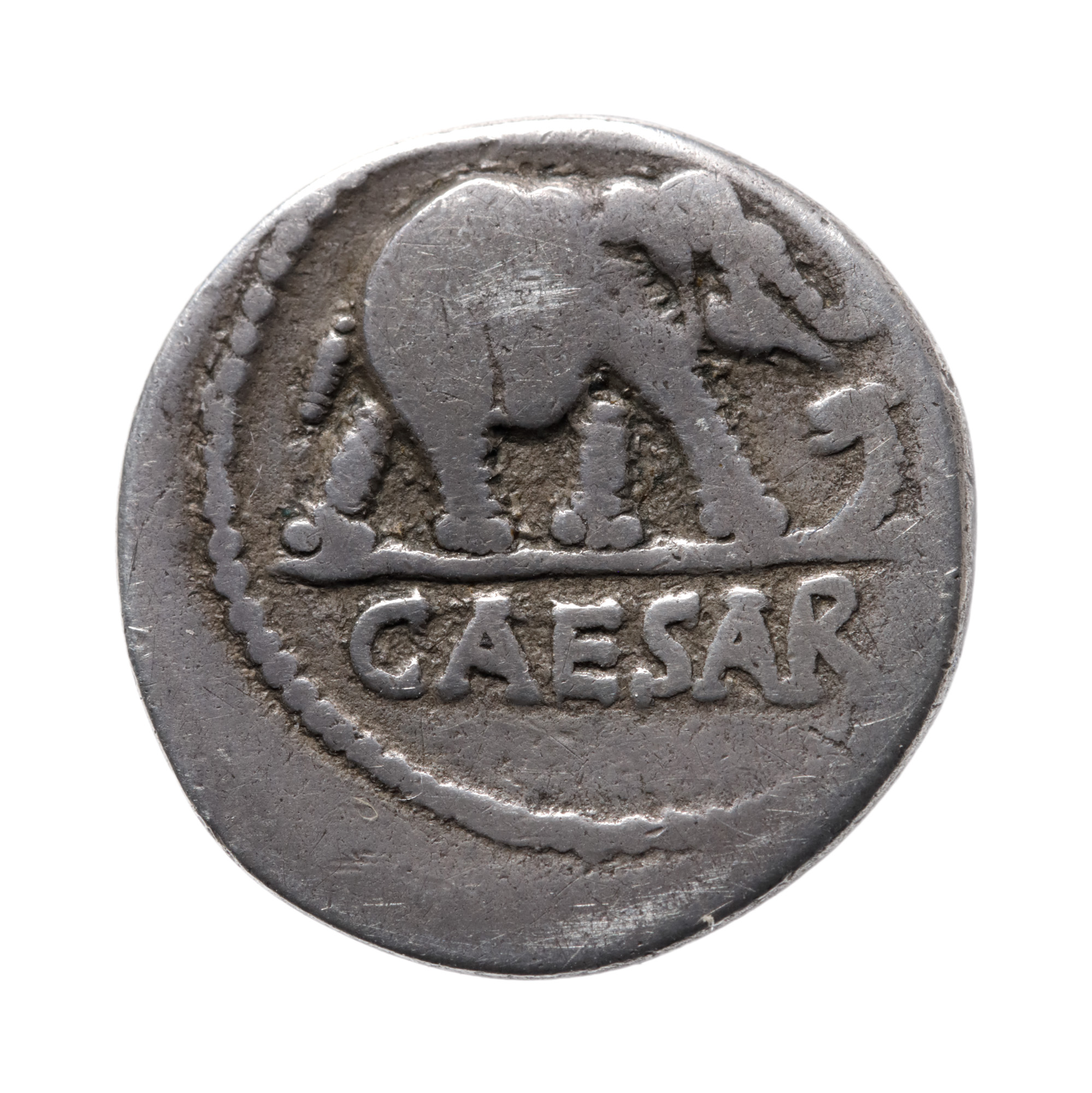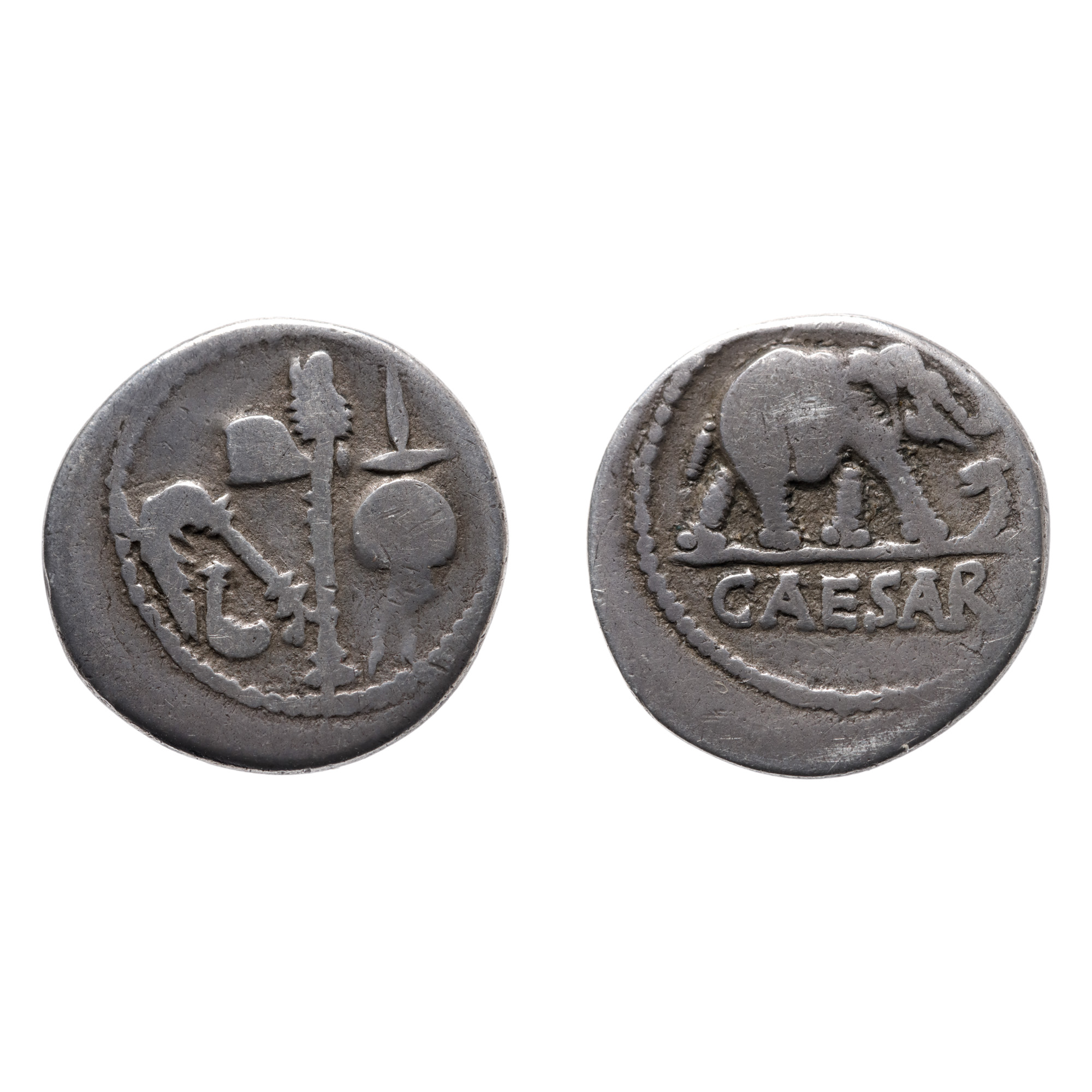 105F. Monedă Denarius, Iulius Cezar, cca. 49-48 î.e.n., argint, piesă rară