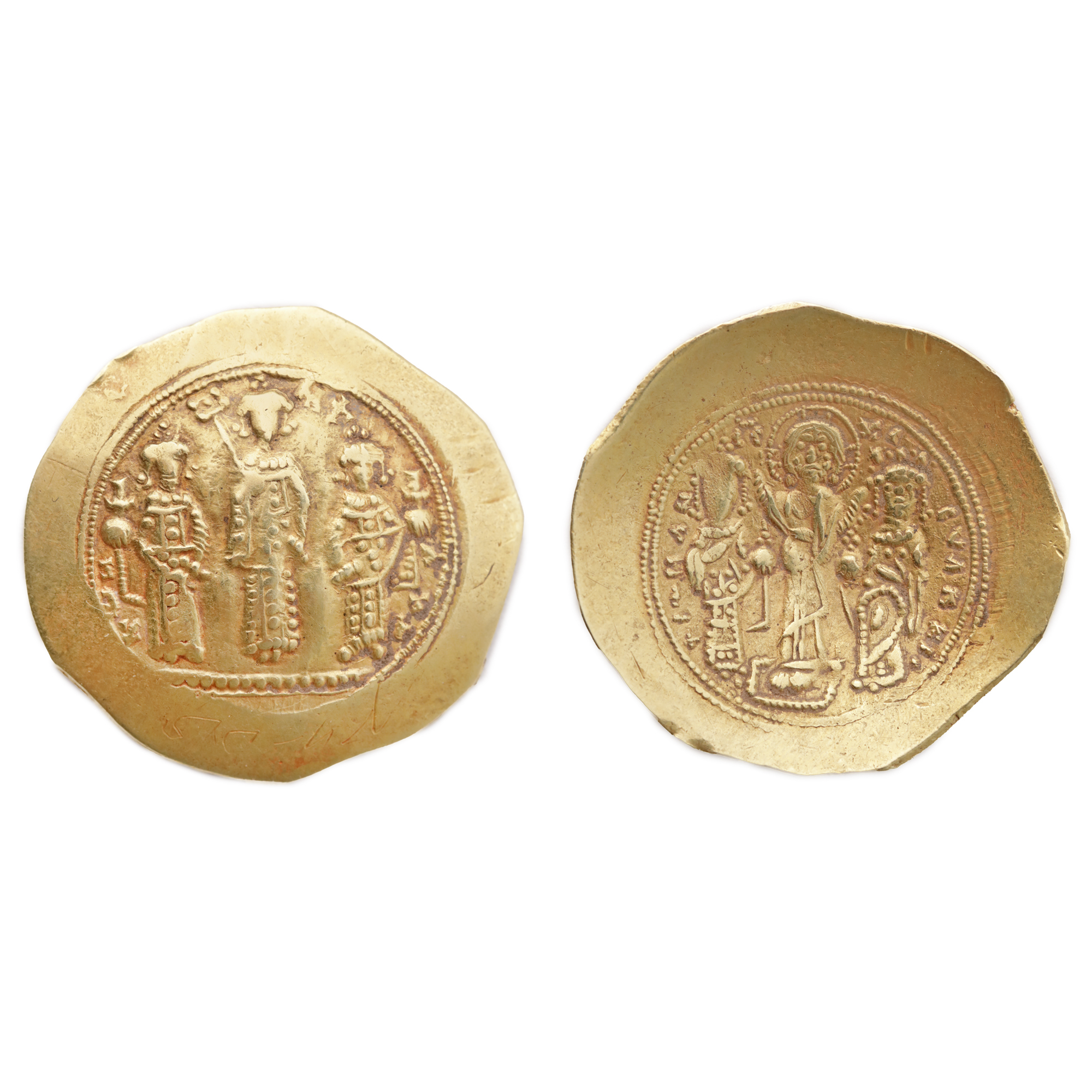 Avers: Hristos stând pe un piedestal, nimband, binecuvântând pe Romanus în stânga și pe Eudocia. Romanus ține un glob cu cruce în mâna stângă, Eudocia în dreapta Revers: stând pe o linie punctată de la stânga la dreapta: micul Constantin, Mihai al VII-lea și Andronic. Mihail îl ține pe Labarum în mâna sa dreaptă, Constantinus și Andronicus țin globuri în cruce în mâna dreaptă.
