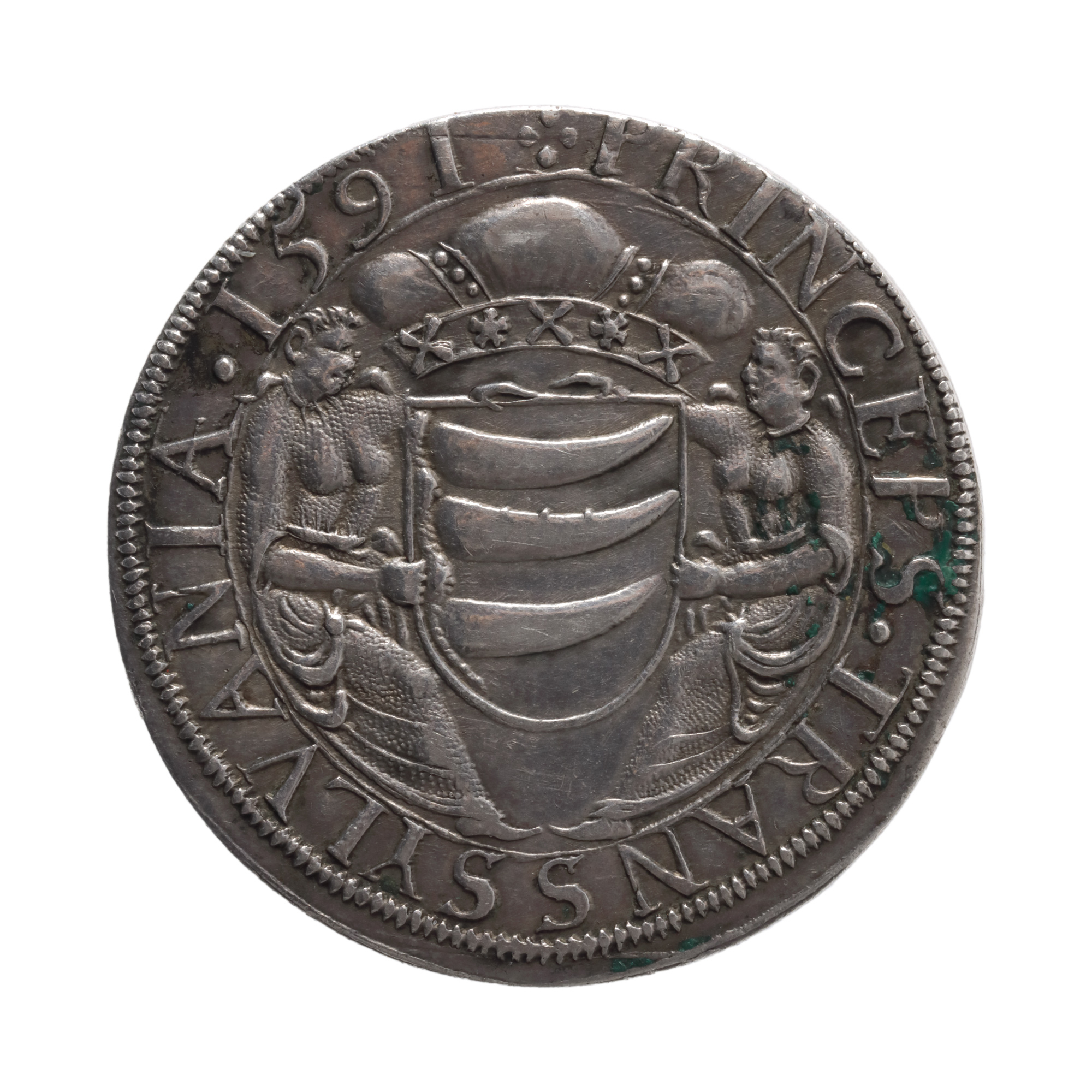 110F. Monedă Taler Sigismund Bathory, Principatul Transilvaniei, 1591, argint
