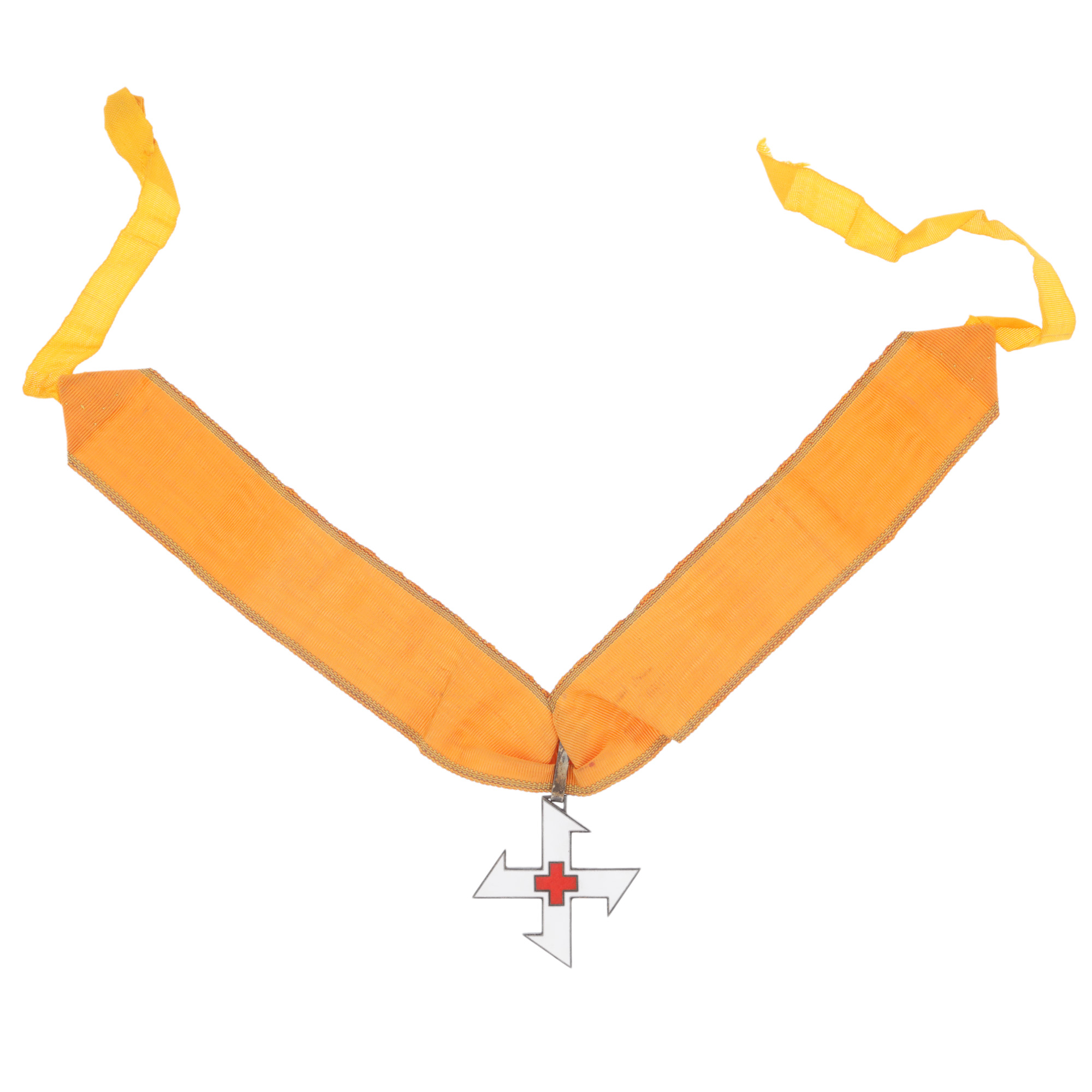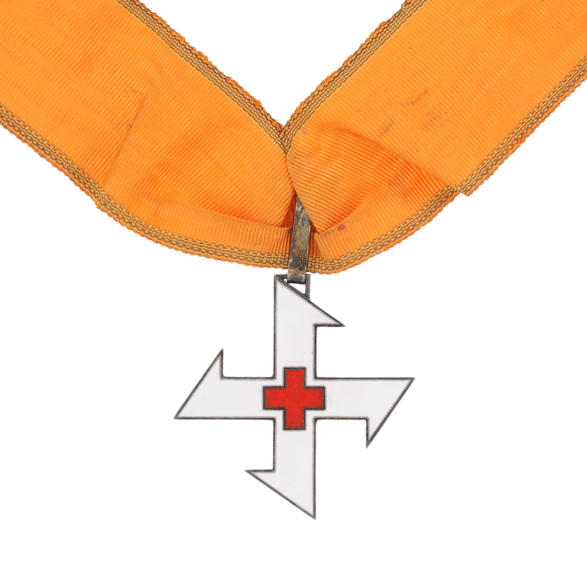 Ordinul, reprezentat printr-o cruce gamată, a fost instituit prin decret regal la data de 17 martie 1917 şi a fost acordat persoanelor care s-au distins în serviciul sanitar în timpul Primului Război Mondial, civili și militari. Piesa este din argint marcat, cu email intact și panglica originală.