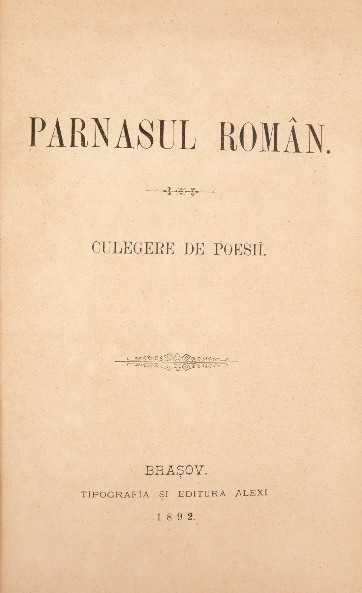 152. ”Parnasul Român. Culegere de poezii”, editată de Teochar Alexi, Brașov, 1892