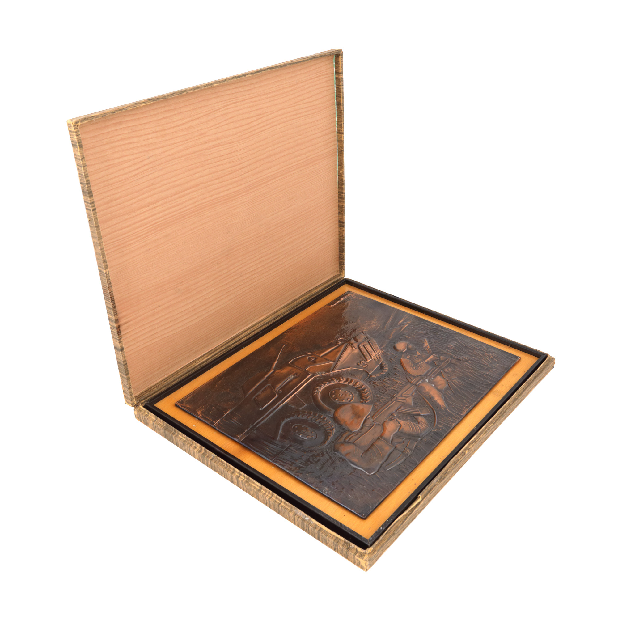 239. Plachetă cu tematică militară antinazistă, în cutia originală, perioada comunistă