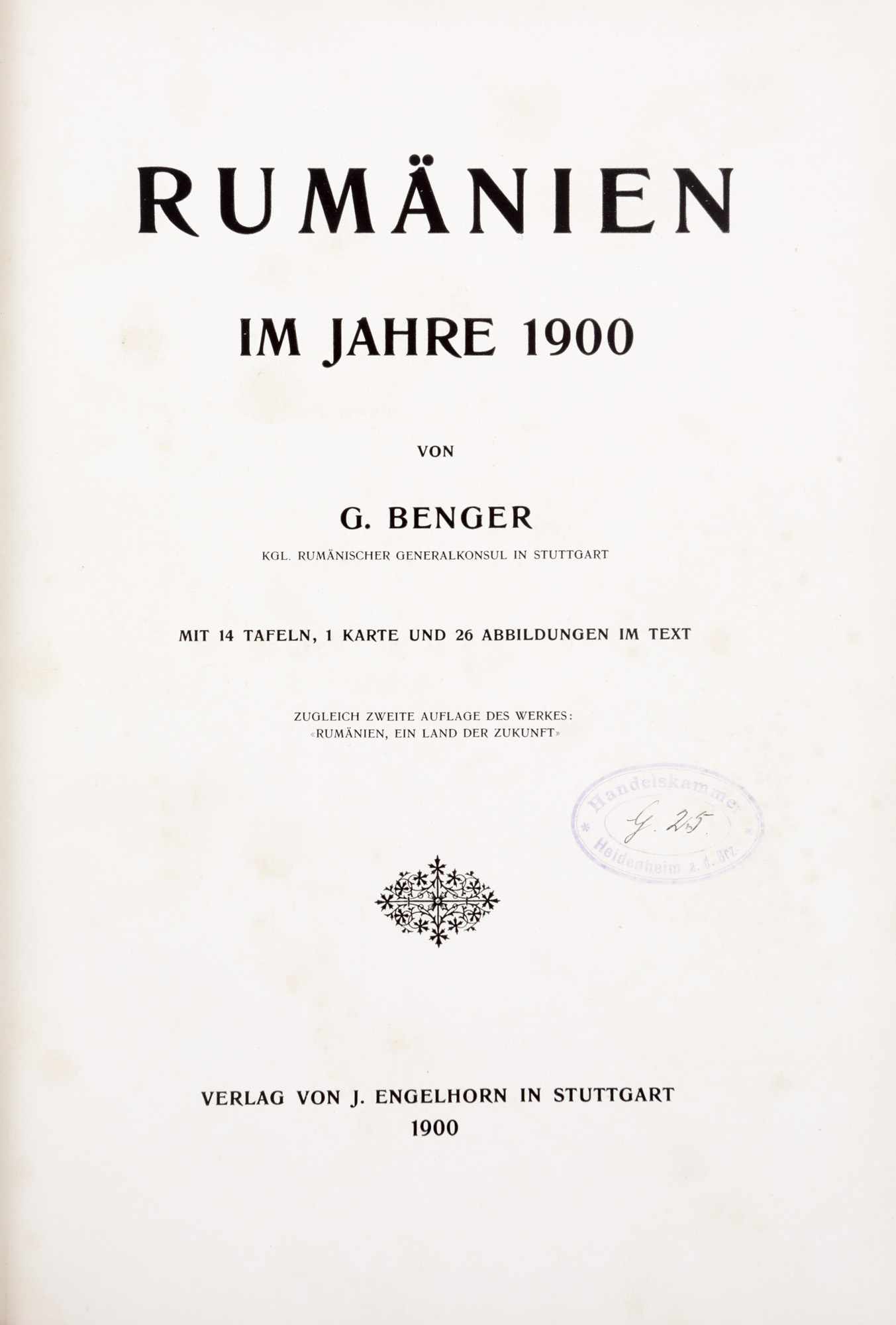 132. "România în anul 1900 (Rumänien im Jahre 1900)", de Gottlieb Benger, germană, Stuttgart, 1900