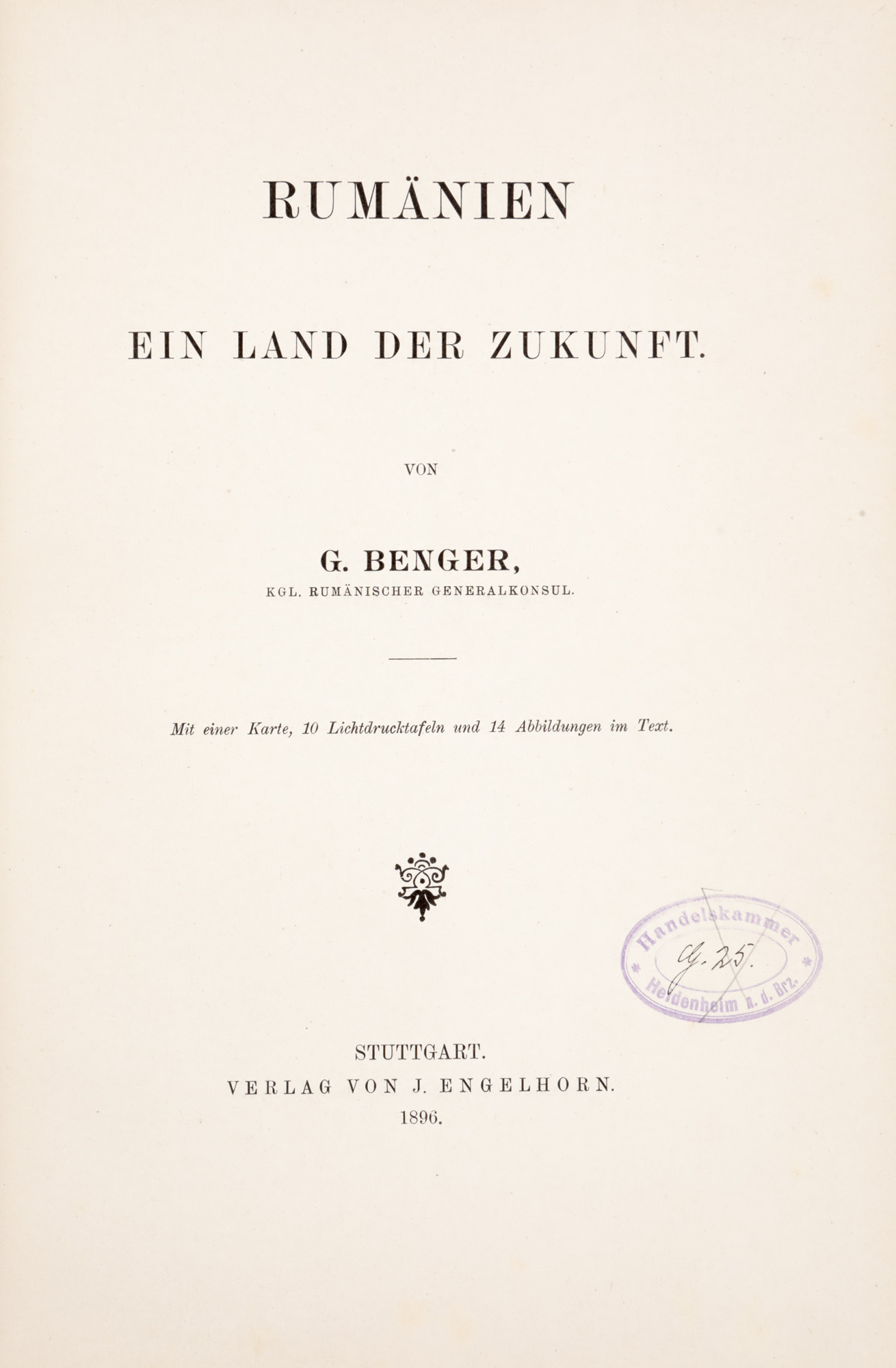131. "România - o țară a viitorului (Rumänien - ein Land der Zukunft)", de Gottlieb Benger, germană, Stuttgart, 1896