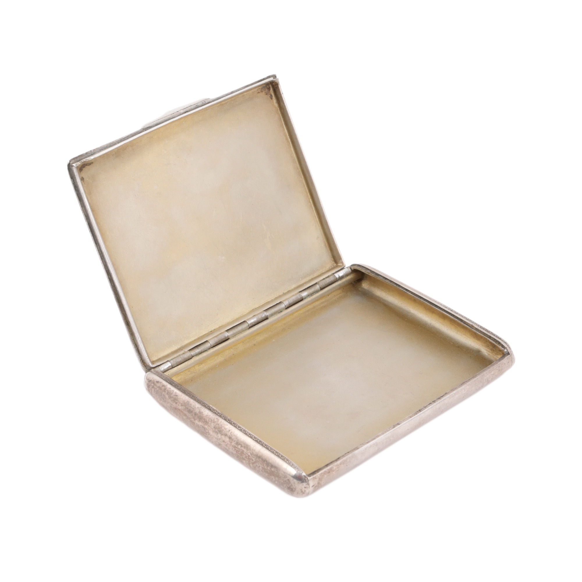85. Tabacheră din argint, decorată cu cifrul Regelui Ferdinand, prima jumătate a sec. XX
