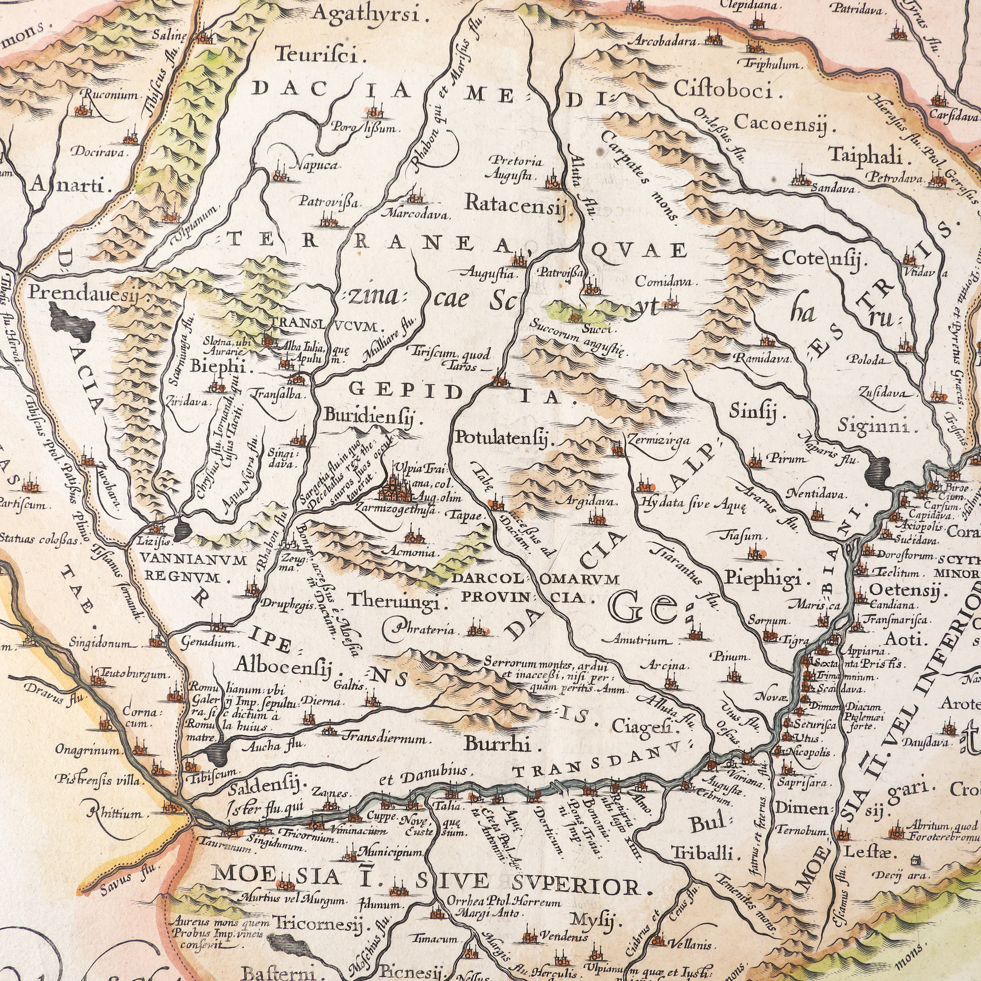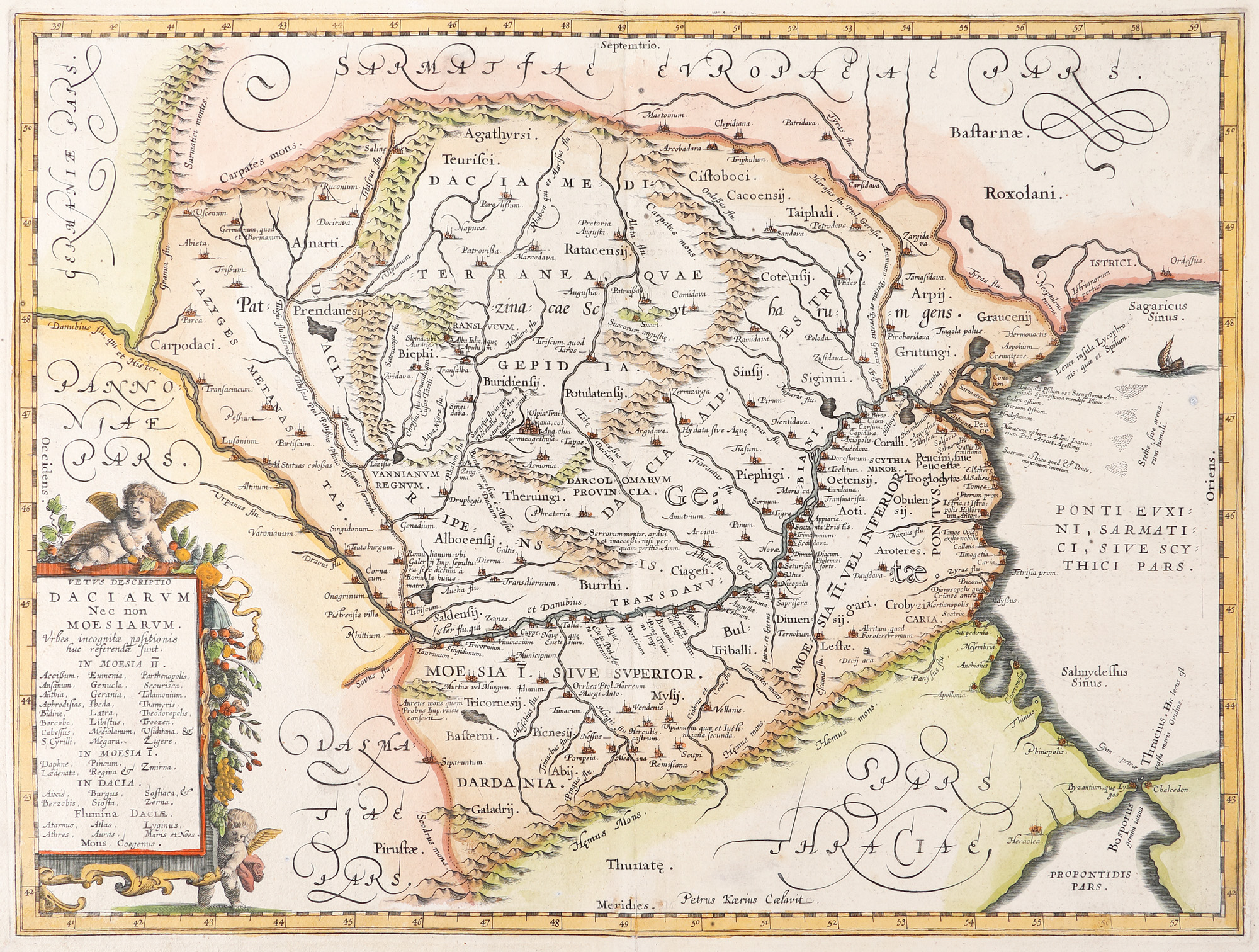 90. Hartă ”Dacia și Moesia”, de Jan Janssonius, Amsterdam, cca. 1650