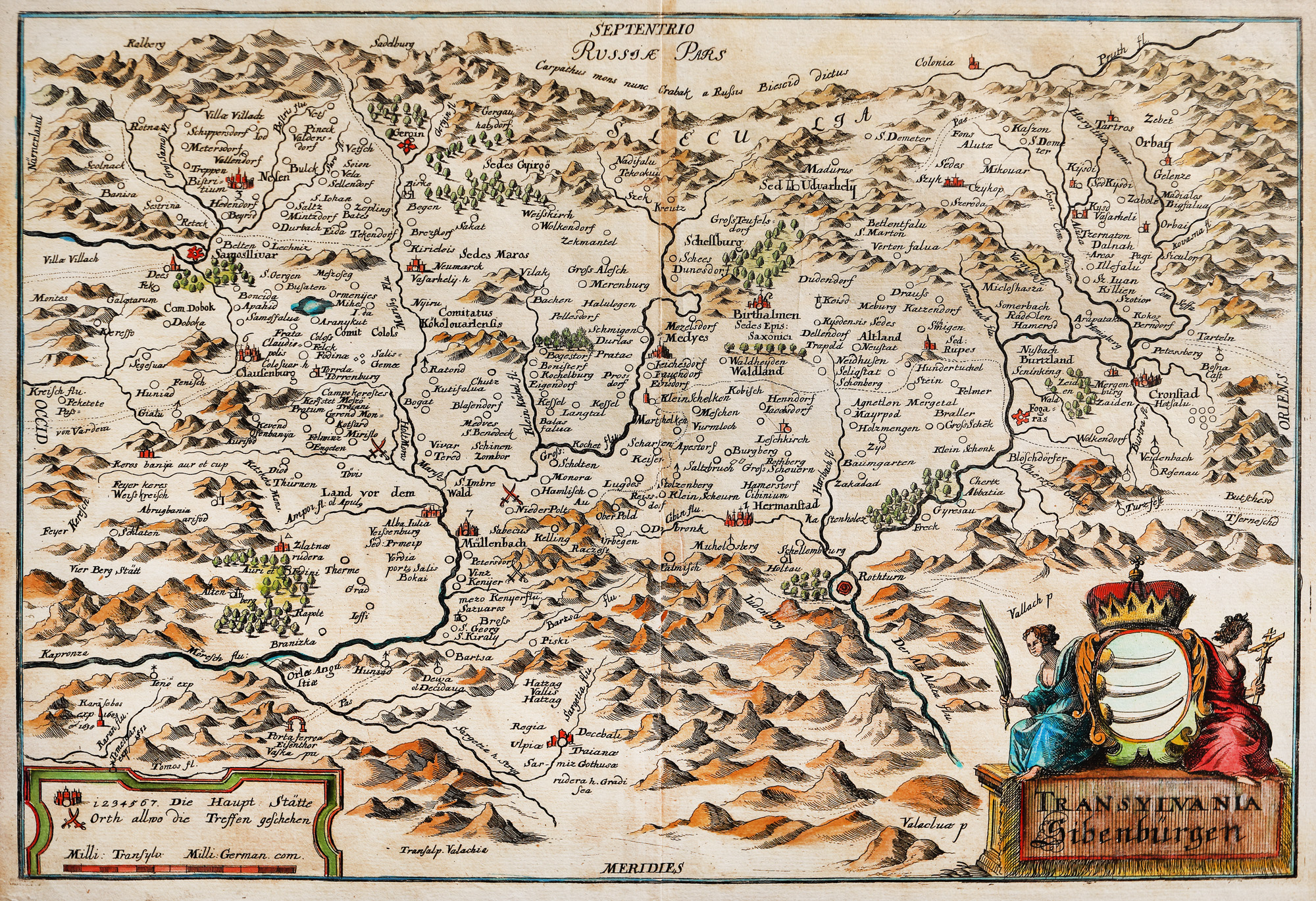 101. Hartă ”Transilvania”, de Matthäus Merian, Frankfurt, cca. 1650, piesă rară, de colecție