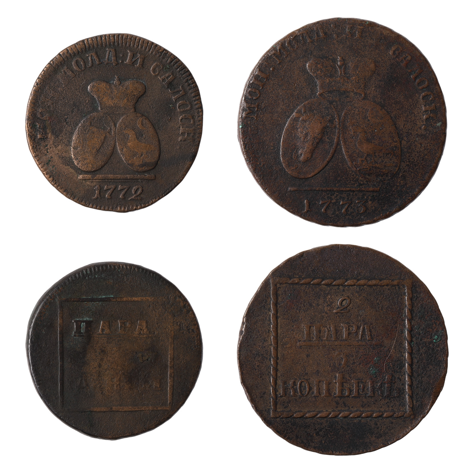 61. Lot format din două monede de 2 parale / 3 copeici 1773 și 1 para / 3 dinghi 1772