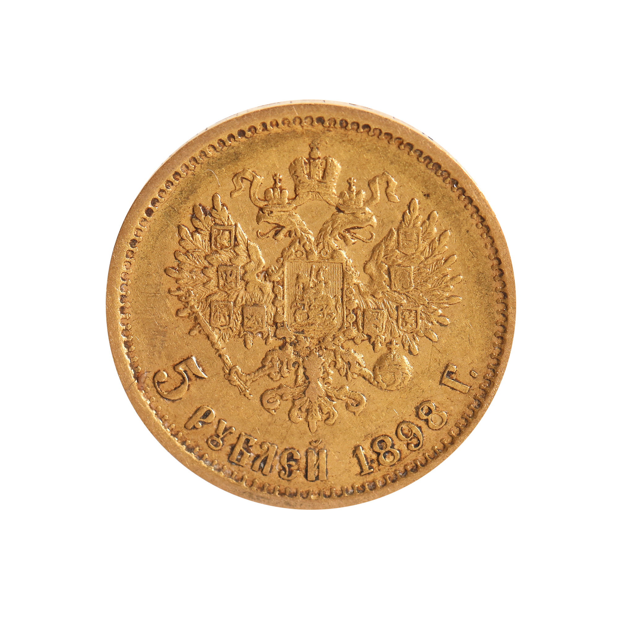 63. Monedă din aur, 5 ruble, 1898, cu efigia împăratului Nicolae II, Rusia