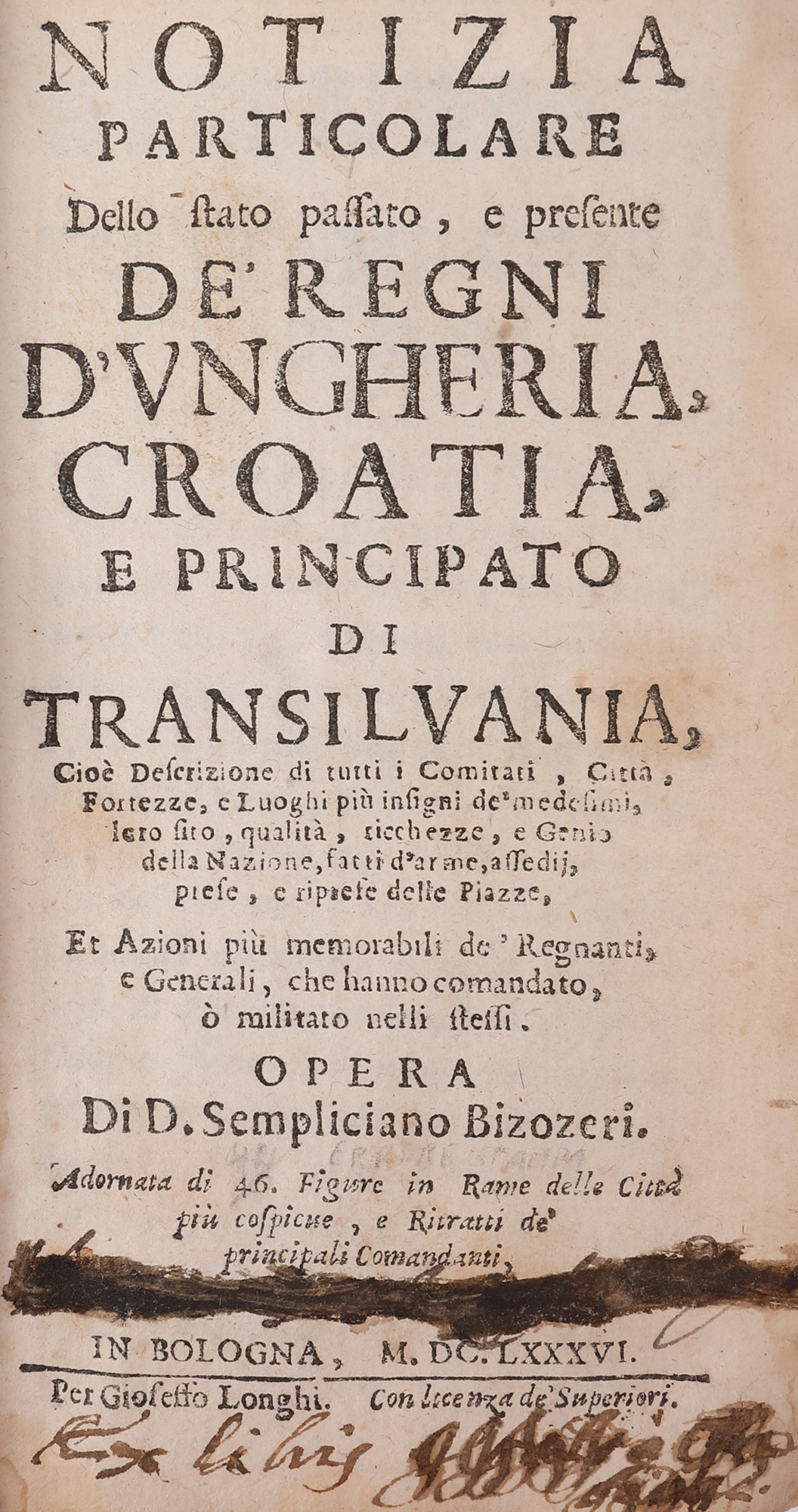 84. ”Noutăți deosebite despre trecutul și prezentul Regatului Ungariei, Croației și Principatului Transilvaniei”, de Sempliciano Bizozeri, ediție princeps, italiană, Bologna, 1686