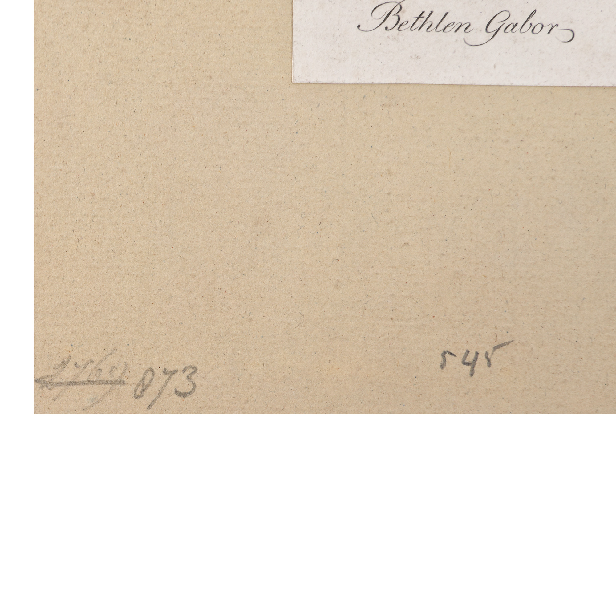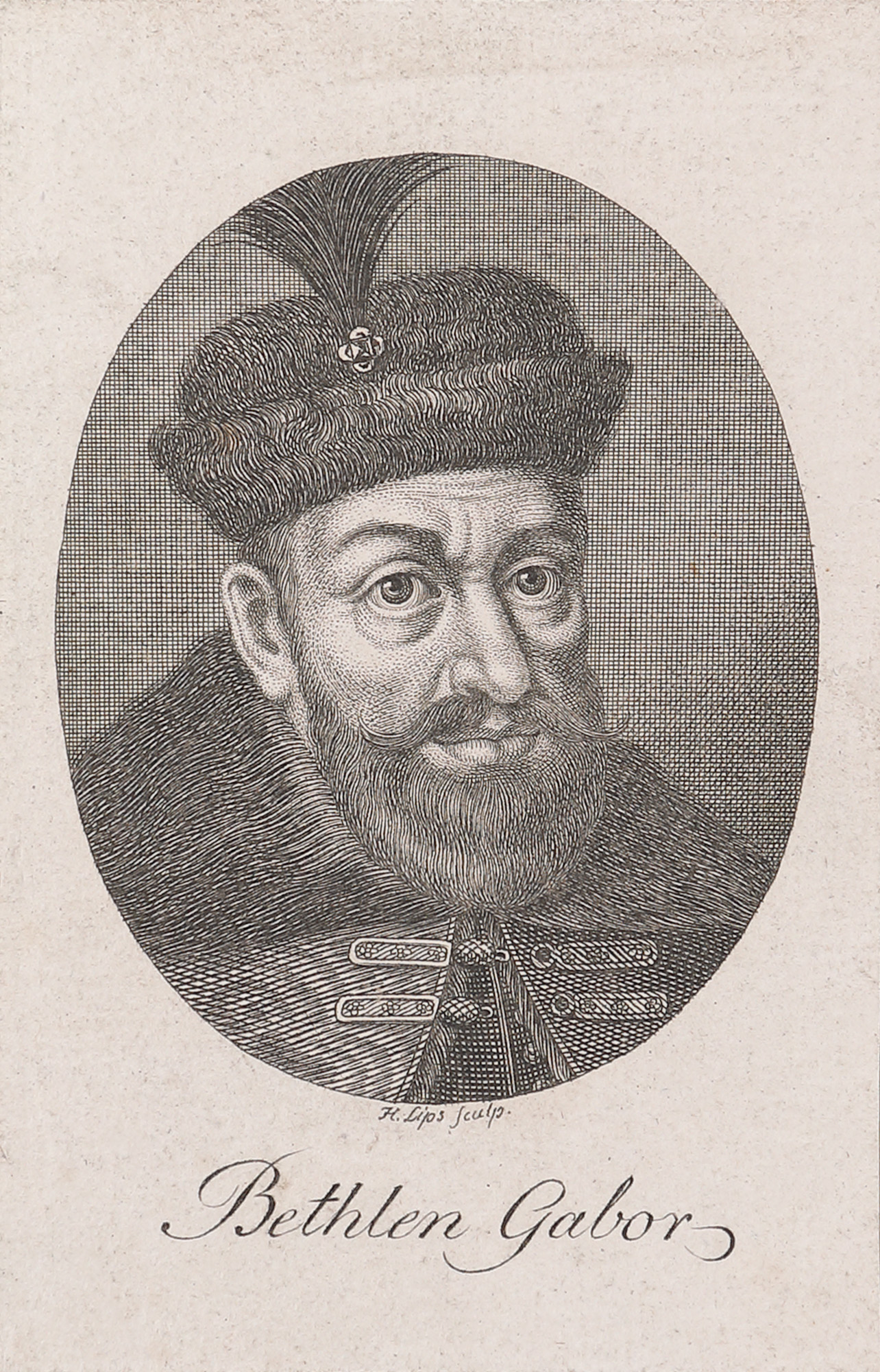 Principele maghiar Gabriel Bethlen a condus principatul Transilvaniei între 1613 și 1629. El s-a afirmat prin politica sa reformatoare și de dezvoltare economică a principatului dar și prin măsurile dure care aveau ca scop concentrarea puterii în mâinile sale. A făcut parte din gruparea nobilimii maghiare care s-a opus cu încercărilor Imperiului Habsburgic de a aduce Transilvania în sfera sa de influență. În timpul Războiului de 30 de ani s-a aliat cu puterile protestante împotriva Austriei catolice. Piesa de față este realizată de gravorul elvețian Johann Heinrich Lips (1758-1817). Gravură pe cupru.