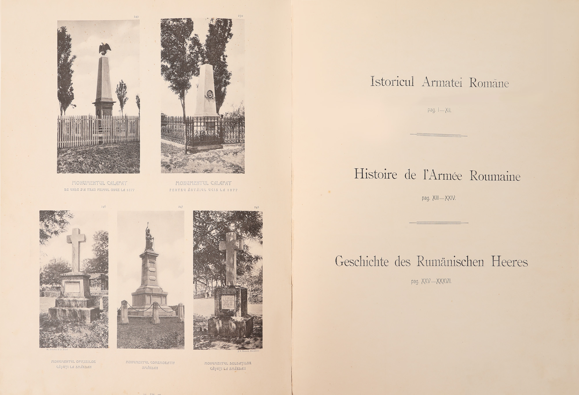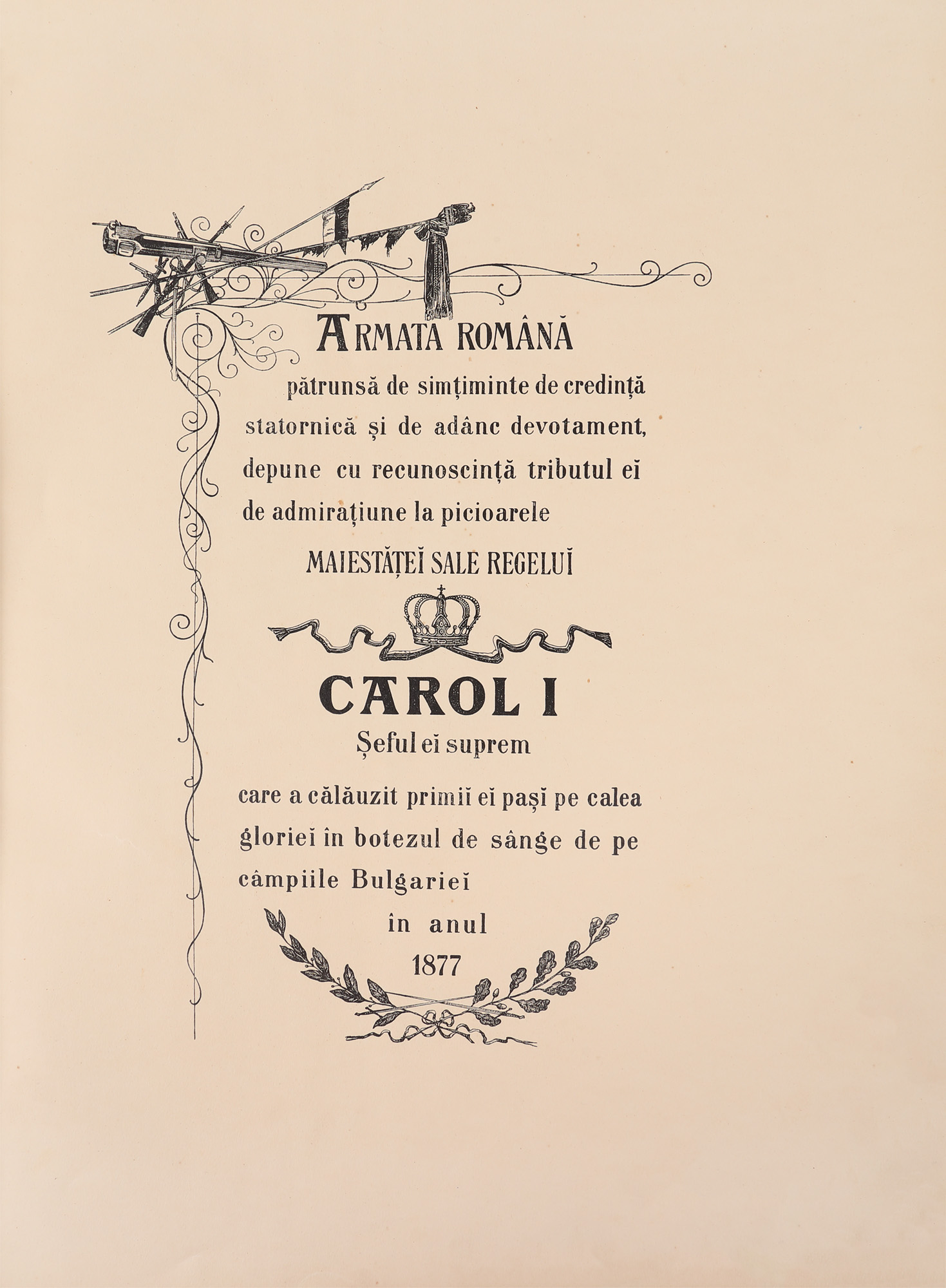 Albumul de fotografii tipărit la Editura Socec din București în onoarea Regelui Carol I, dar și a renăscutei armate române, conține peste 250 de ilustrații, printre altele, ale familiei regale, comandanților armatei, unităților militare, cazărmilor și echipamentului utilizat, în cele 173 de pagini ale volumului. Informațiile despre Sfinții Patroni ai unităților, a istoricului și acțiunilor acestora sau a locației sediului fiecăreia sunt redate în 3 limbi, franceză, germană și română.