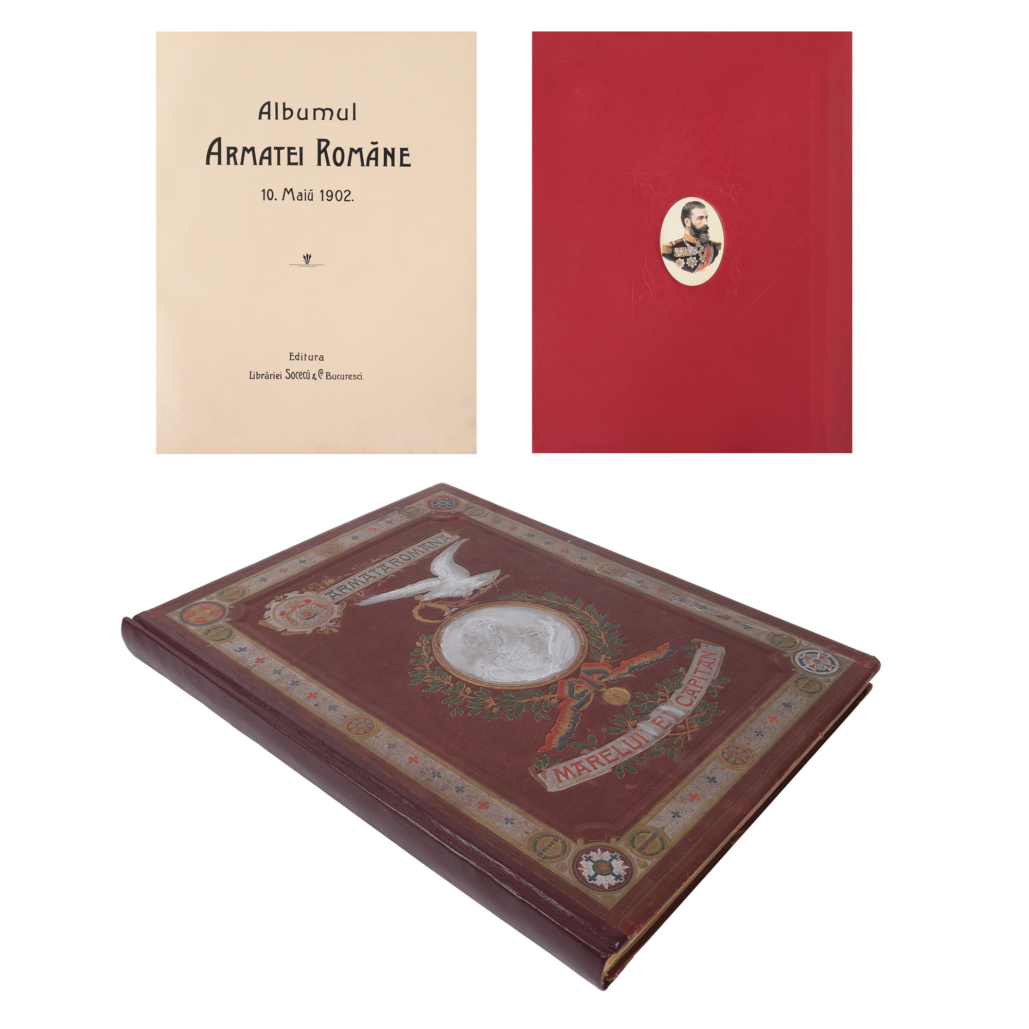 276. "Armata Română, Marelui Ei Căpitan", album de fotografii militare, 10 mai 1902, cu coperta originală și etui