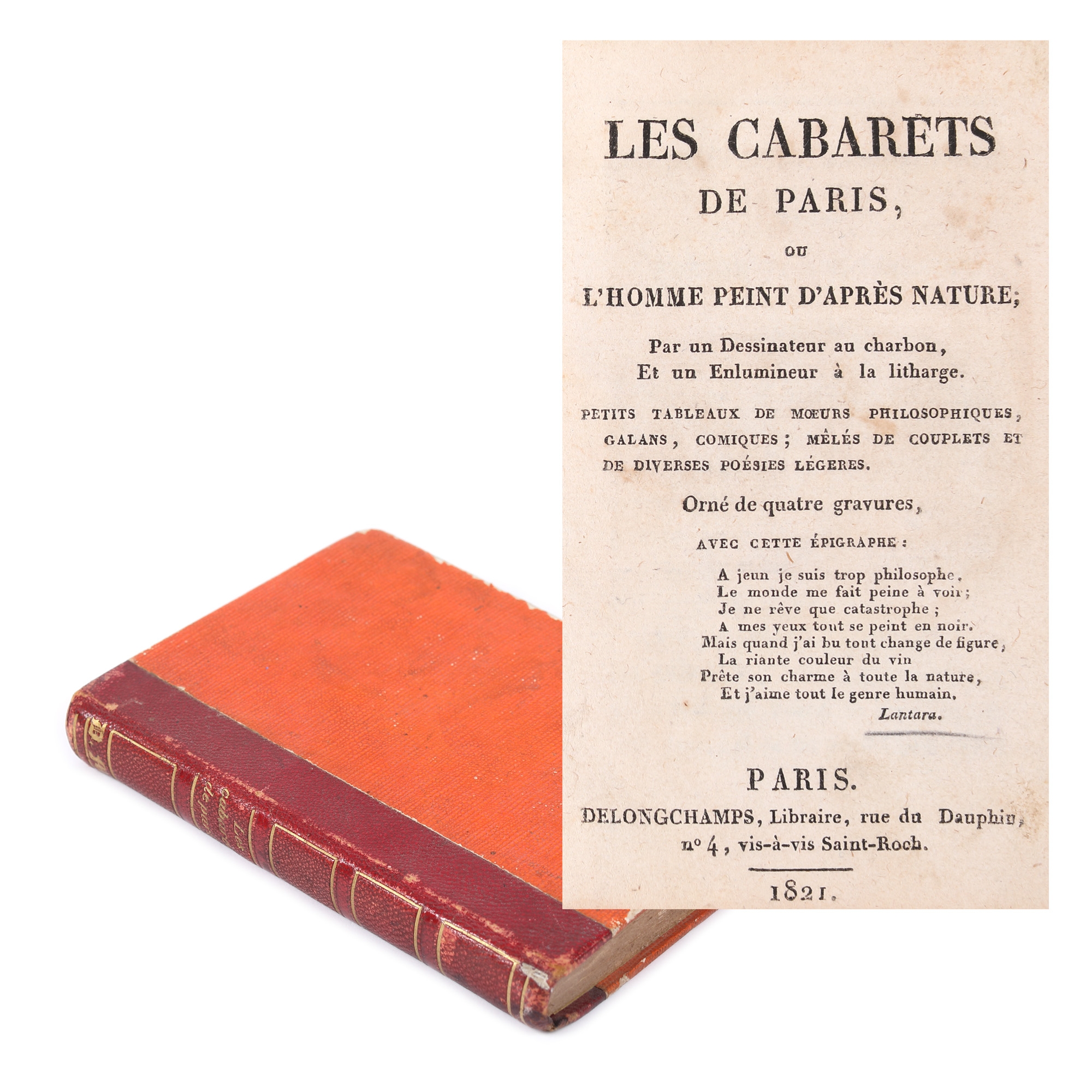 Volumul cuprinde scurte povestiri, anecdote, scene de moravuri referitoare la distracțiile, lumea modei, a cabaretelor pariziene de la începutul secolului al XIX-lea, după încheierea epocii napoleoniene. Volumul, publicat de ziaristul și scriitorul francez J.P.R. Cuisin, este decorat cu patru gravuri realizate pe cupru, nesemnate. Exemplarul este legat într-o legătură de secol XIX din pergamoid, cu cotorul din piele și se prezintă într-o bună stare de conservare.