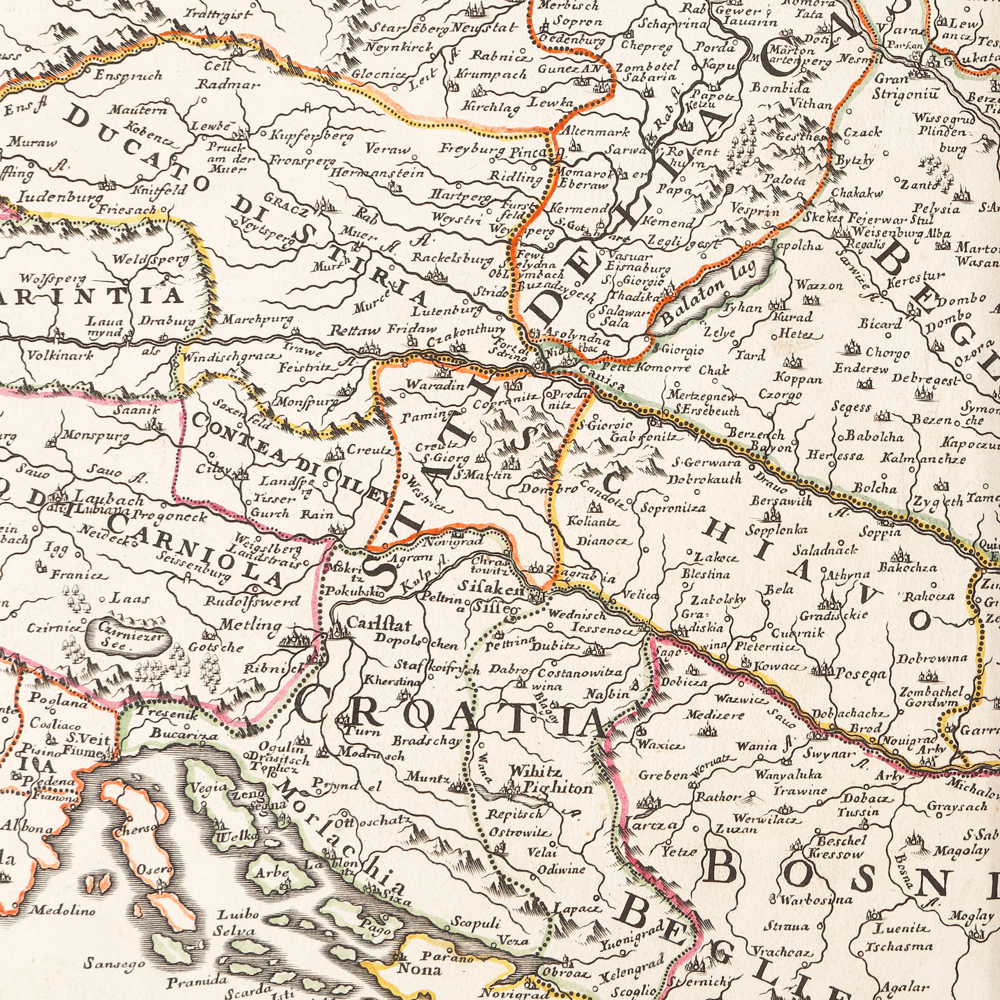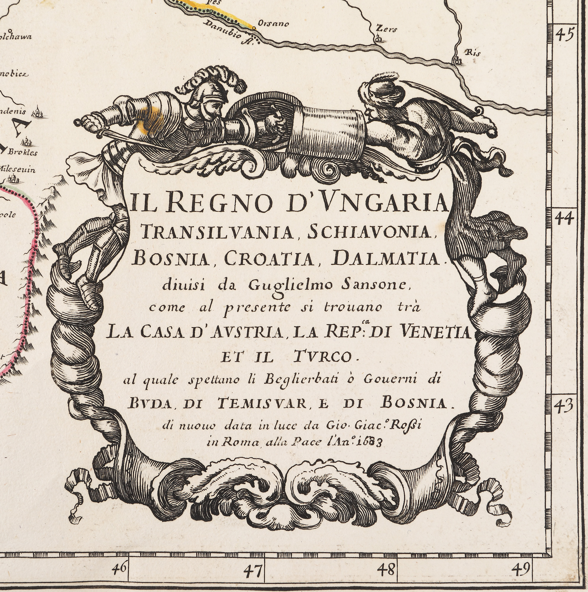 318. Hartă "Regatul Ungariei, cu Transilvania, Esclavonia, Bosnia, Croația și Dalmația", de Giovanni Giacomo de Rossi, Roma, 1683