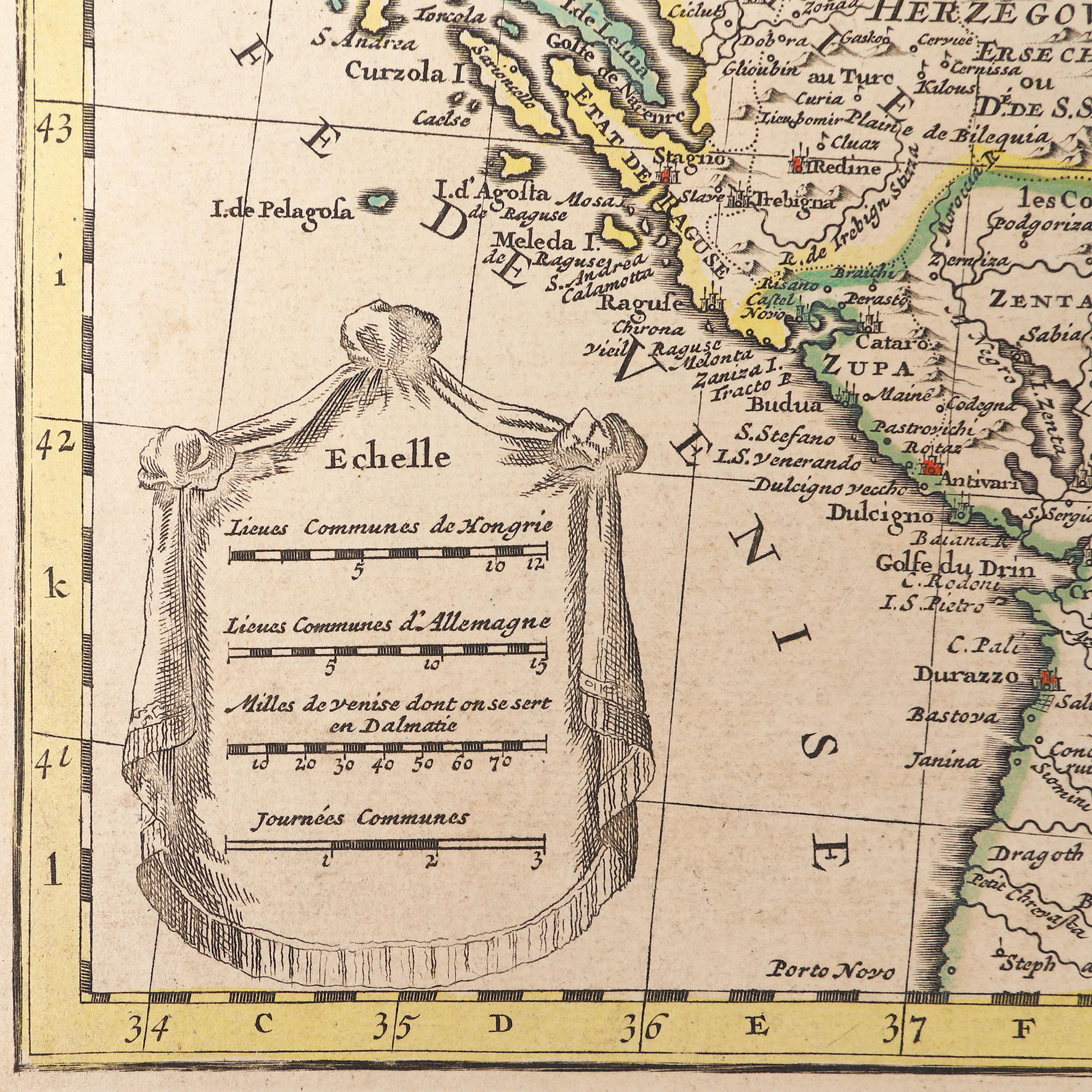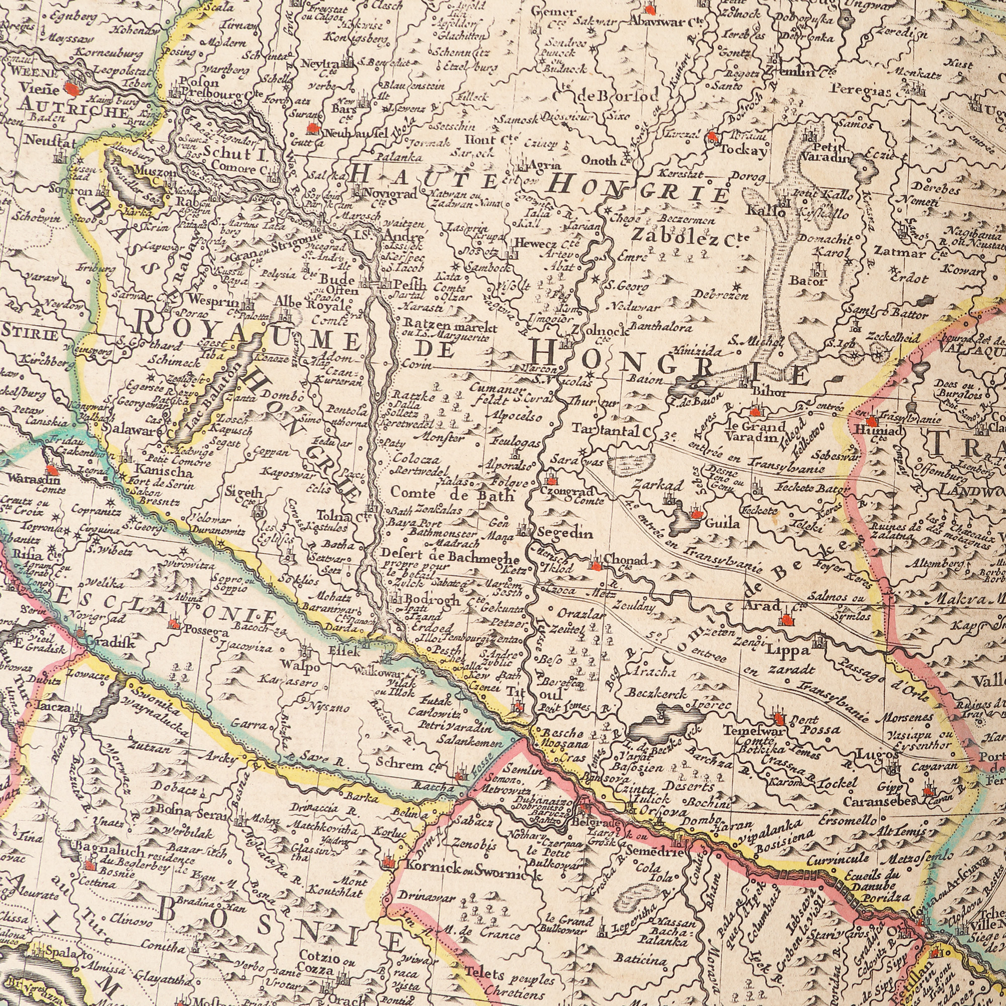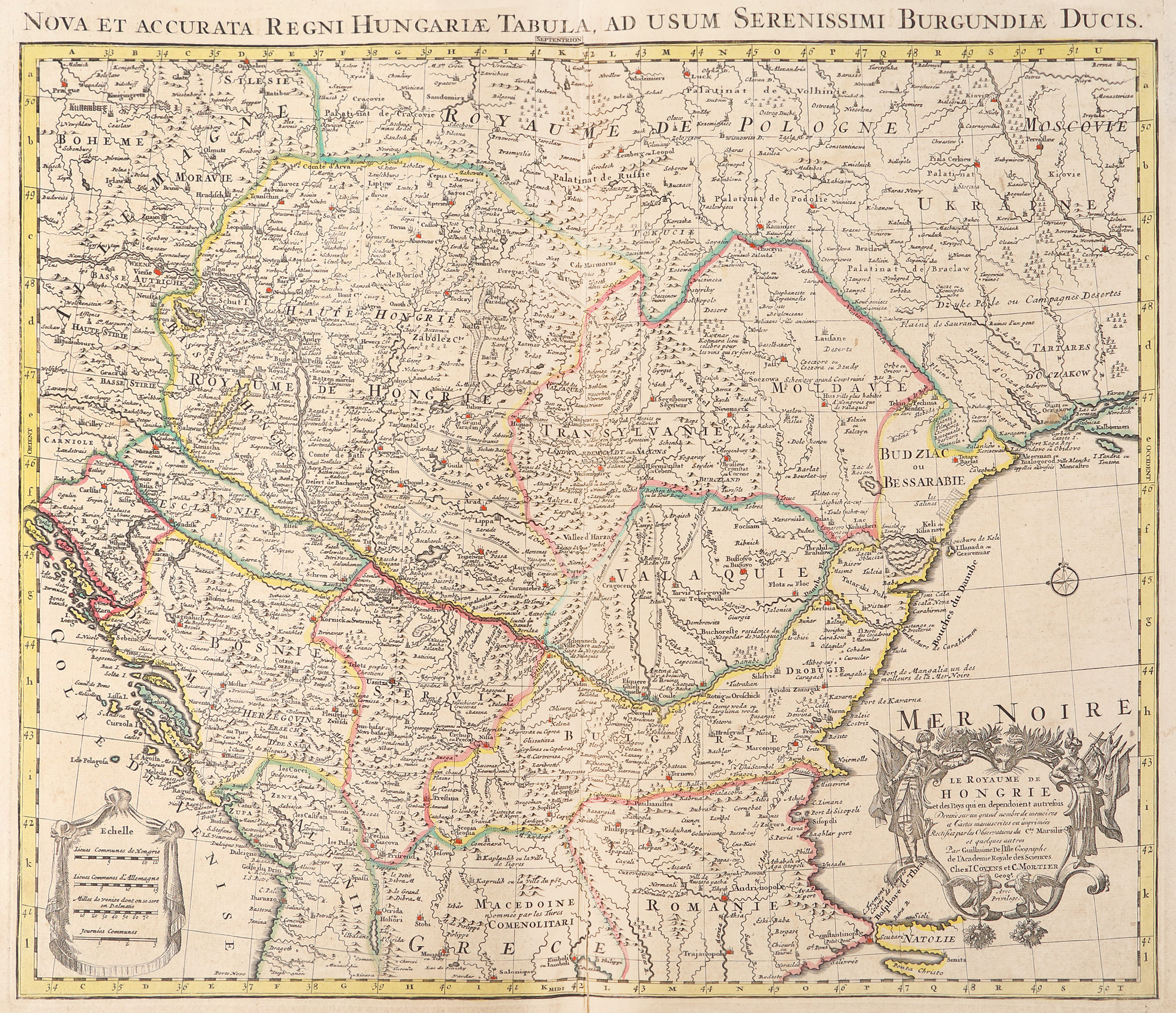Cartograful francez Guillaume de l'Isle (1675-1726) este cunoscut atât pentru lucrările lui dedicate Europei, cât mai ales pentru atlasul Americii de Nord. Angajat la curtea regelui Franței Ludovic al XV-lea, el publica pentru prima dată această lucrare în 1703 la Paris. Exemplarul de față face parte dintr-o ediție apărută în capitala regatului francez în 1780, în imprimeria Dezauché, sub patronajul regelui Ludovic al XVI-lea. Harta cuprinde atât teritoriul istoric al Ungariei, cât și teritorii care aparținuseră în trecut de coroana maghiară. Interesant de observat este faptul că aici figurează și părți ale Ucrainei, Rusiei, Moldovei și Munteniei, precum și Crimeea sau Marea Neagră. Gravură pe cupru colorată manual după imprimare.