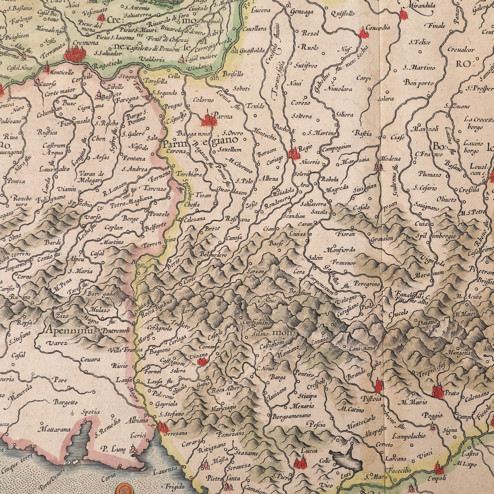 314. Hartă ”Rumandiola și Ducatul de Parma”, de Gerardus Mercator, Amsterdam, 1595