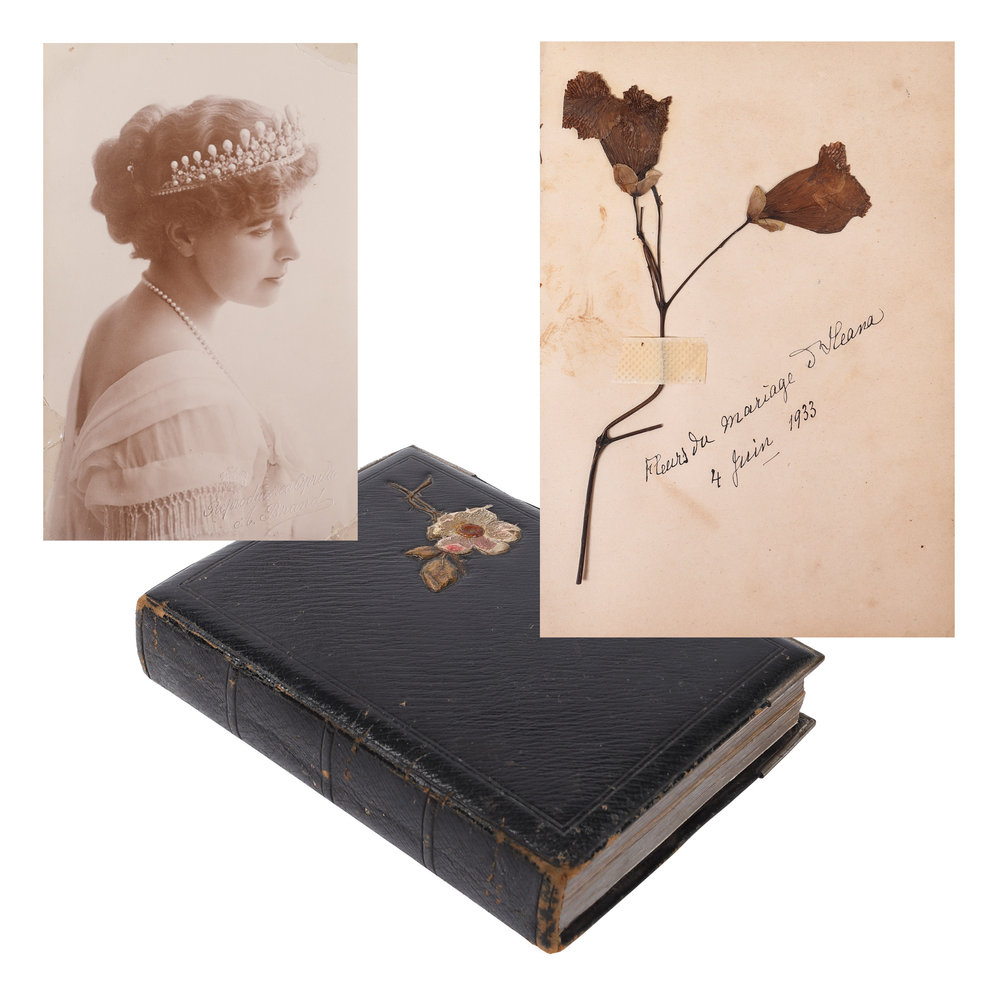 279. Jurnal intim, aparținând unei doamne de la curtea Reginei Elisabeta, Esperance Gulianu, conținând flori presate și fotografii, sfârșitul sec. XIX-începutul sec. XX
