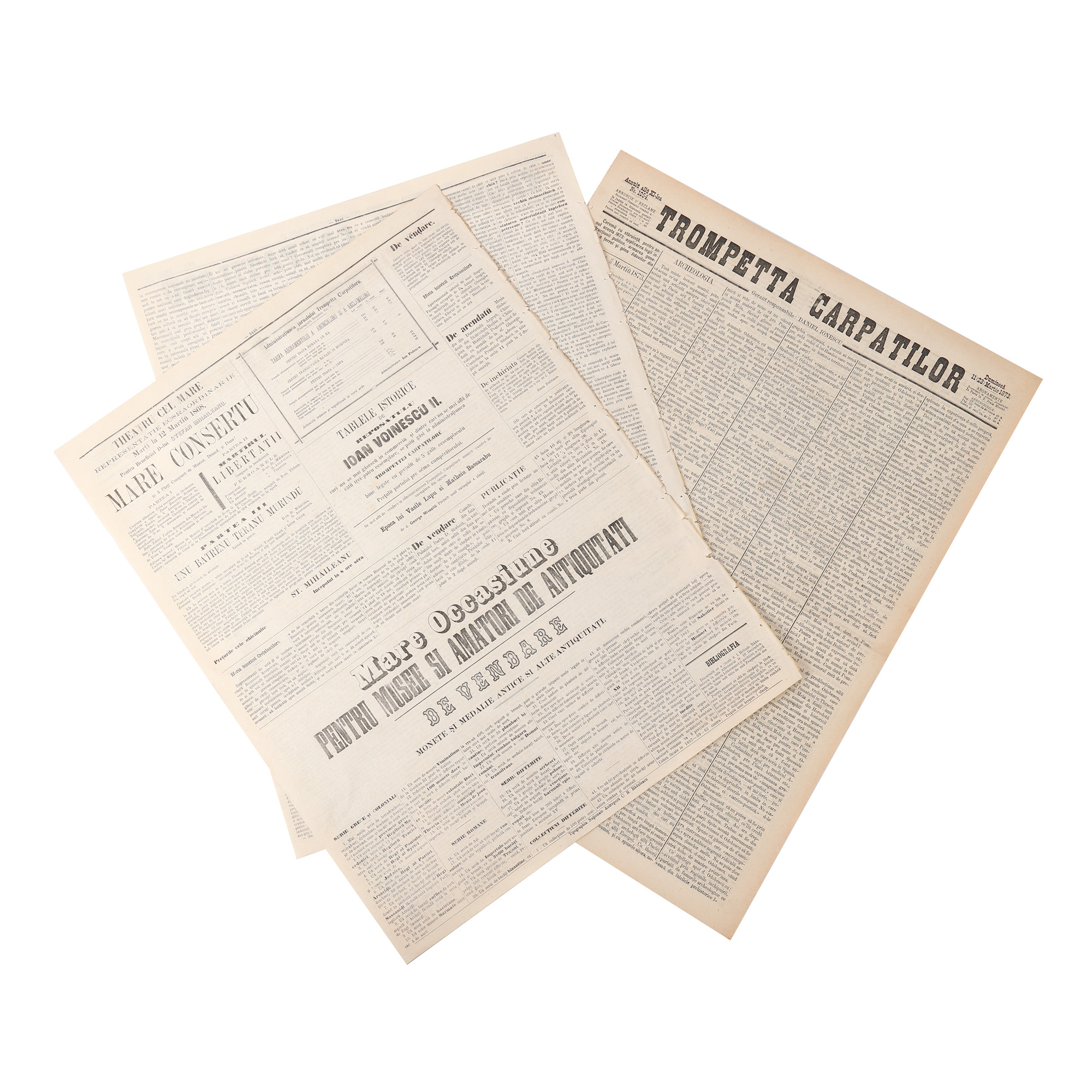 328. Lot format din două numere ale ziarului ”Trompeta Carpaților”, numerele 612 și 1054 , 7/19 martie 1868 și 11/23 martie 1873
