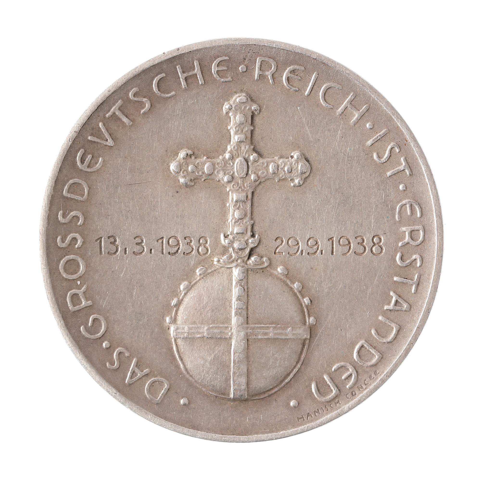 225. Medalia ”Anexarea Austriei și a Regiunii Sudeților”, gravor Hanisch Concee, 1938, argint