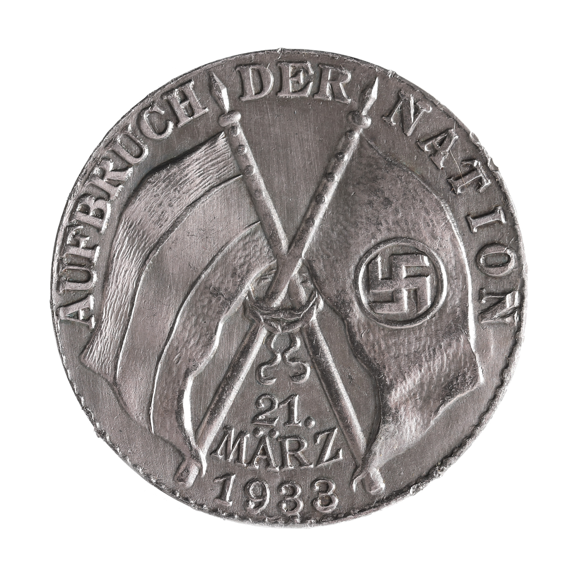 Aversul medaliei cuprinde bustul cancelarului Reich-ului, orientat spre stânga și înconjurat de sintagma în exergă „Reichskanzler Adolf Hitler • 30 . jan . 1933 • ", în timp ce reversul acesteia conține steagurile împreunate și legate împreună, simbol al indivizibilității eventualei uniri survenite ulterior, ale Austriei și Germaniei, localizate central, alături de inscripția „Aufbruch der nation" sau „zorii unei națiuni" și de milesimul „21 März 1933", data formării noului parlament în urma incendiului de la Reichstag, în care s-a desfășurat și un discurs important al lui Hitler.