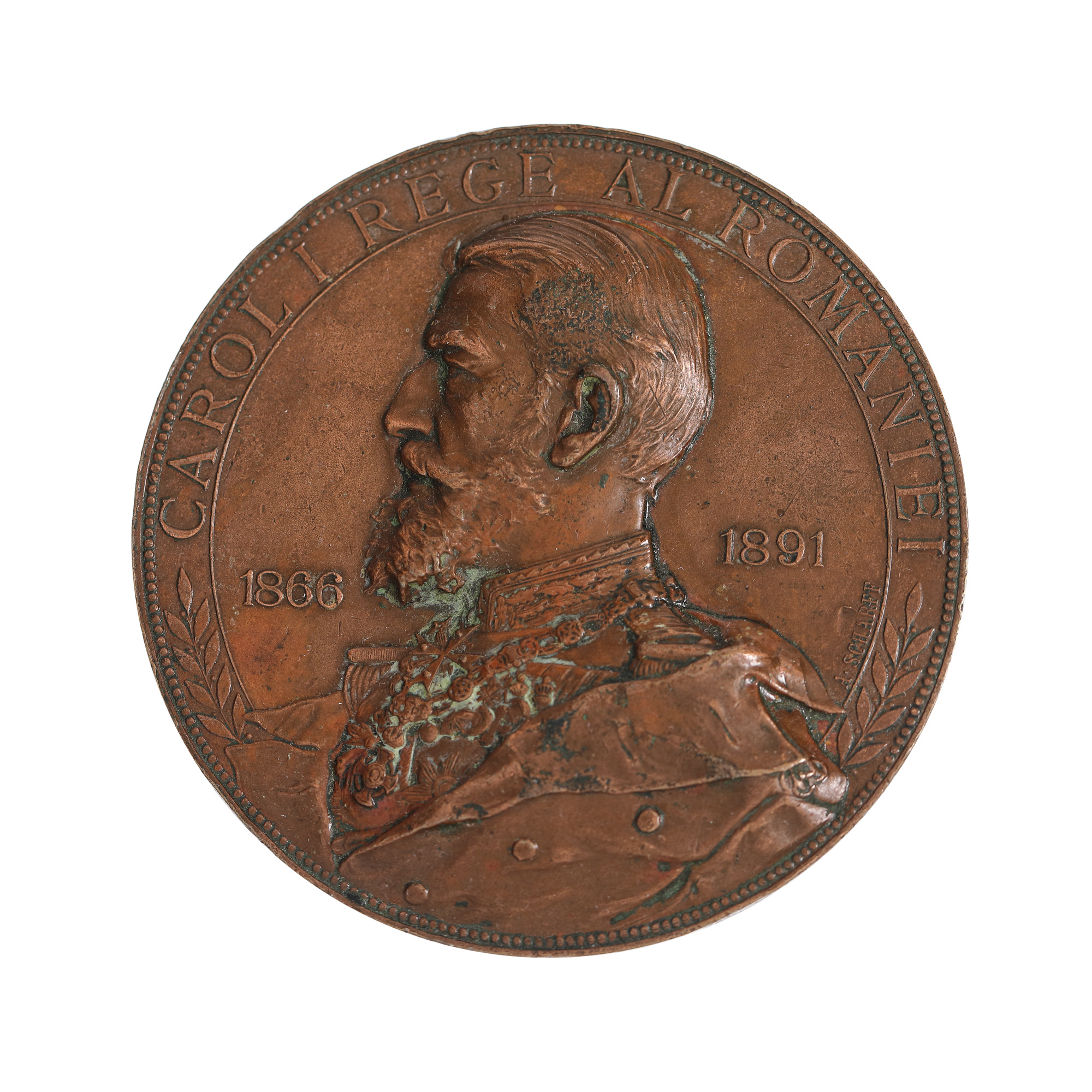 Fiind primul monarh al dinastiei Hohenzollern-Sigmaringen în România, Carol I este proclamat inițial domnitor la 10 mai 1866, iar mai apoi primul rege al României la data de 10 mai 1881, medalia marcând astfel în 1891 celebrarea împlinirii a 25 de ani de domnie. Realizată de reputatul gravor austriac Anton Scharff, aceasta cuprinde pe avers bustul regelui Carol I, orientat spre stânga și înconjurat de atât de titulatura sa, dar și de anii săi de domnie, 1866 - 1891, iar pe revers este inclusă o reprezentare alegorică a României, ținând în mână o pană și alături de un leu, de un scut cu stema regatului și de inscripția „Nihil sine Deo" sau „Nimic fără Dumnezeu".