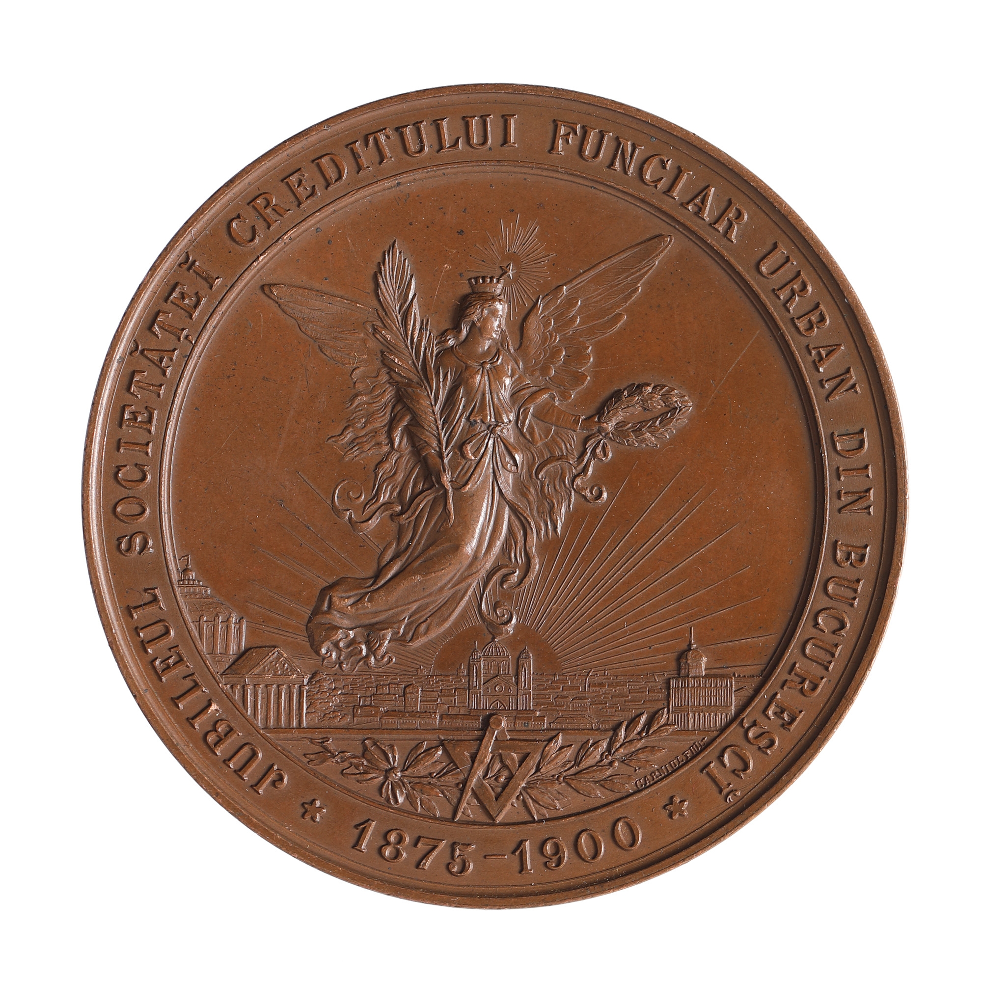 Medalia este dedicată atât lui Alexandru Băicoianu, personalitate juridică a secolului al XIX-lea și autor al unui Tratat de drept civil român, cât și jubileului de 25 de ani al Societății Creditului Funciar Urban din București. Piesa este realizată de gravorul Mauriciu Carniol. Aversul prezintă bustul orientat spre stânga al magistratului și inscripția circulară „Muncei și activității lui Al. G. Băicoianu 1875-1900'', iar reversul prezintă orașul București, înconjurat de numele Societății, peste care trece în zbor zeița Victoria ținând în mâini o ramură de palmier și o cunună de lauri, alături de echerul și compasul suprapuse, simbolul universal al Masoneriei.