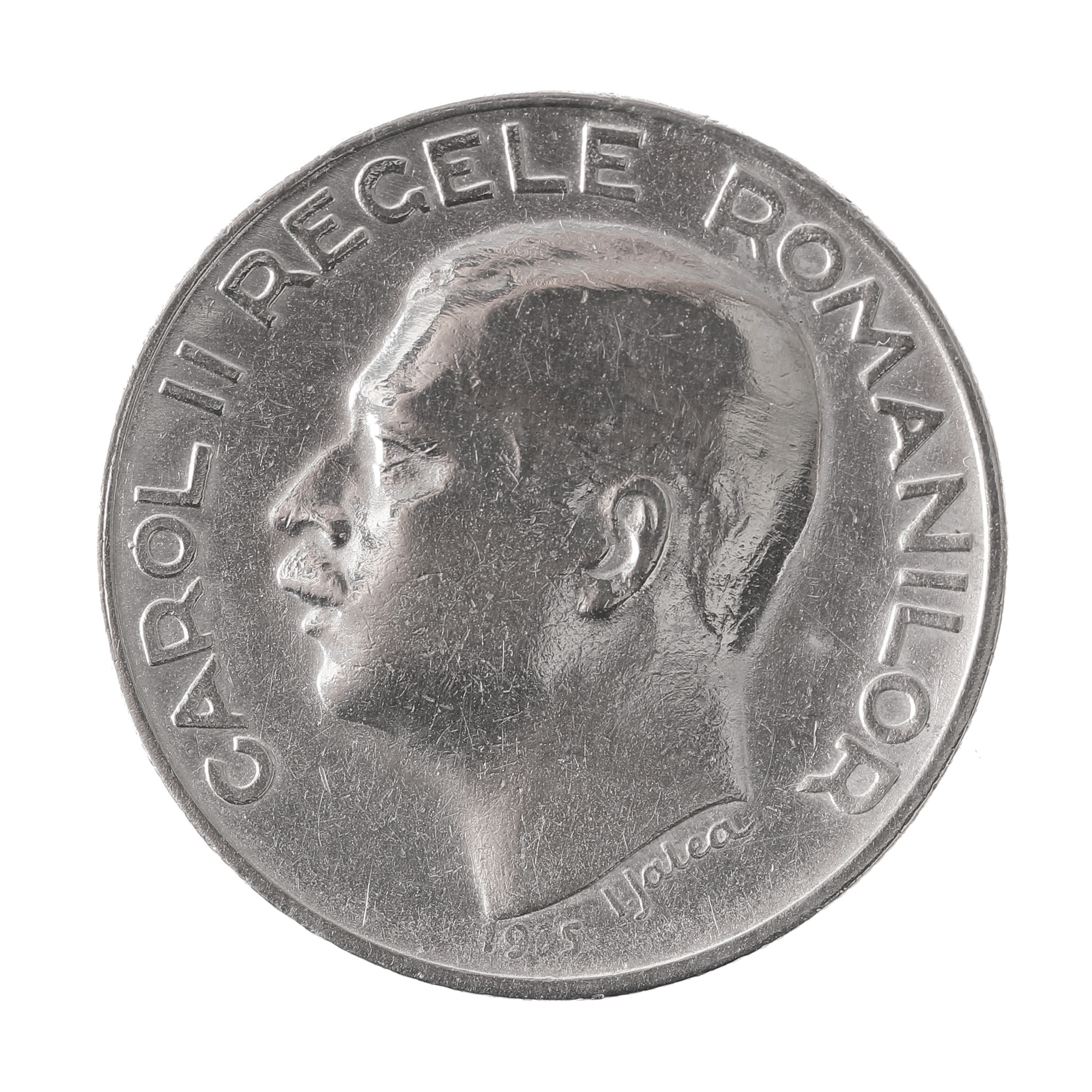 Avers: bustul regelui Carol al II-lea, orientat spre stânga, alături de inscripția „Carol II regele Romanilor / 1935 / I. Jalea", semnătura gravorului și sculptorului Ion Jalea Revers: stema regatului și inscripția „250 lei"