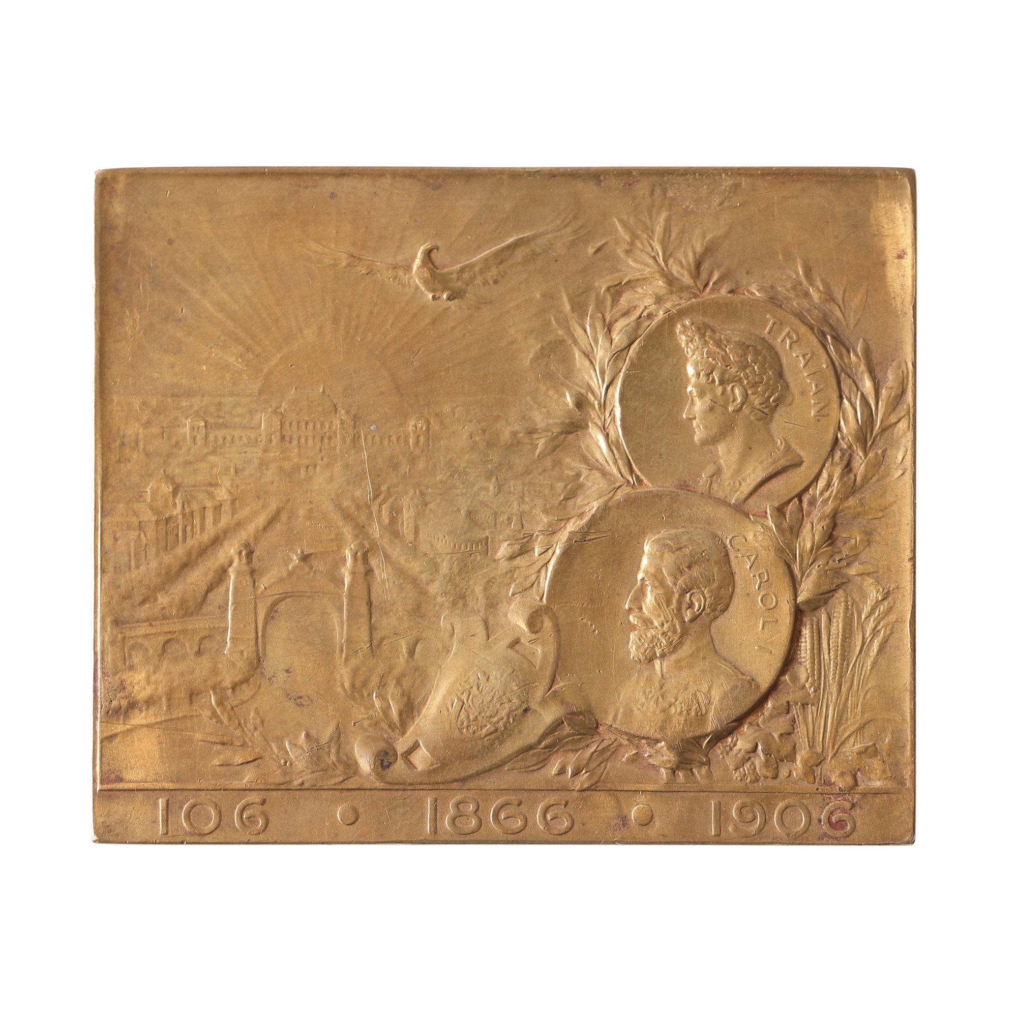 246. Placheta "Regele veghează, România înflorește", gravor Louis Stelmans, 1906