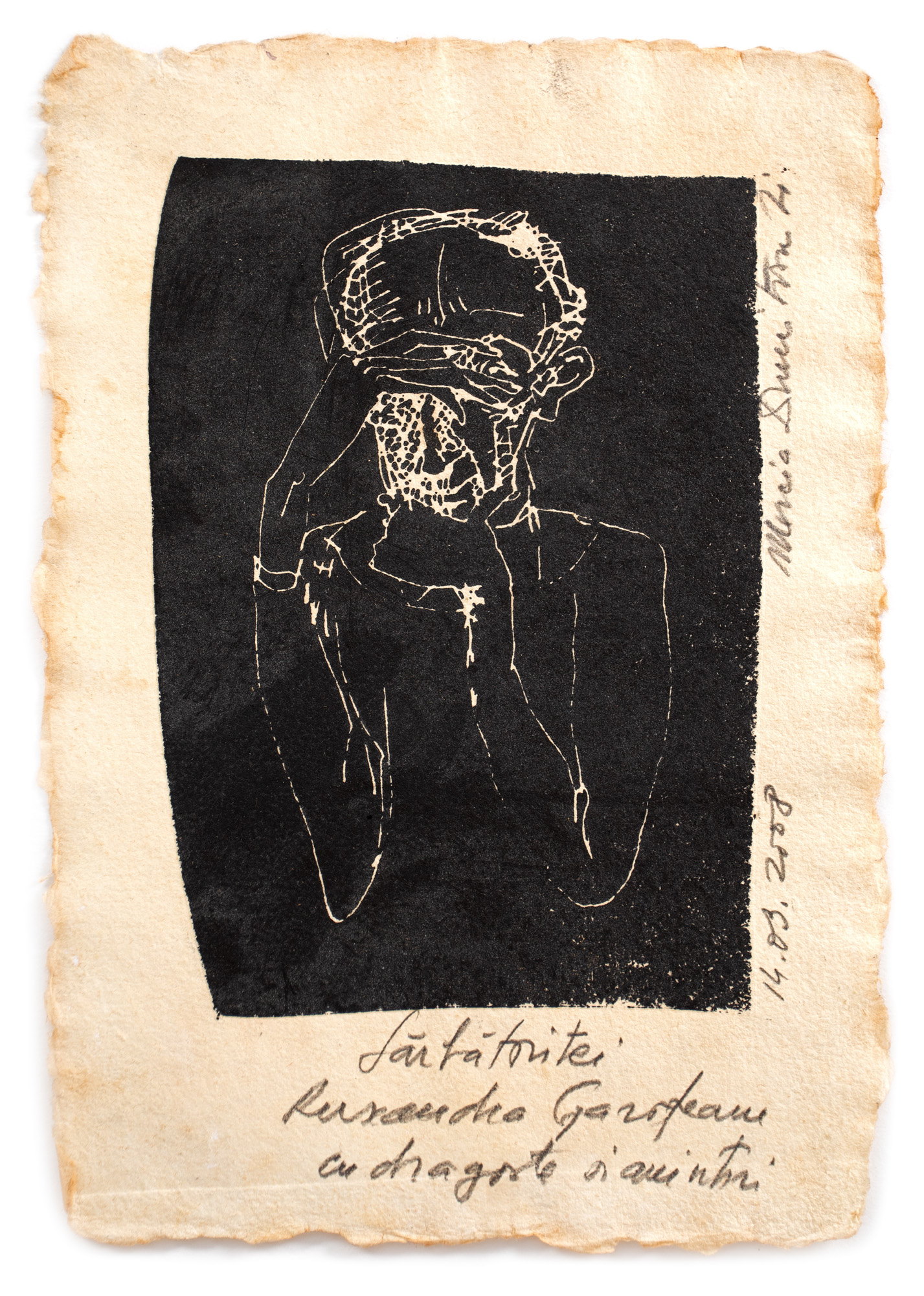 semnat şi datat lateral dreapta, în creion, "Mircia Dumitrescu, 14.09.2008"